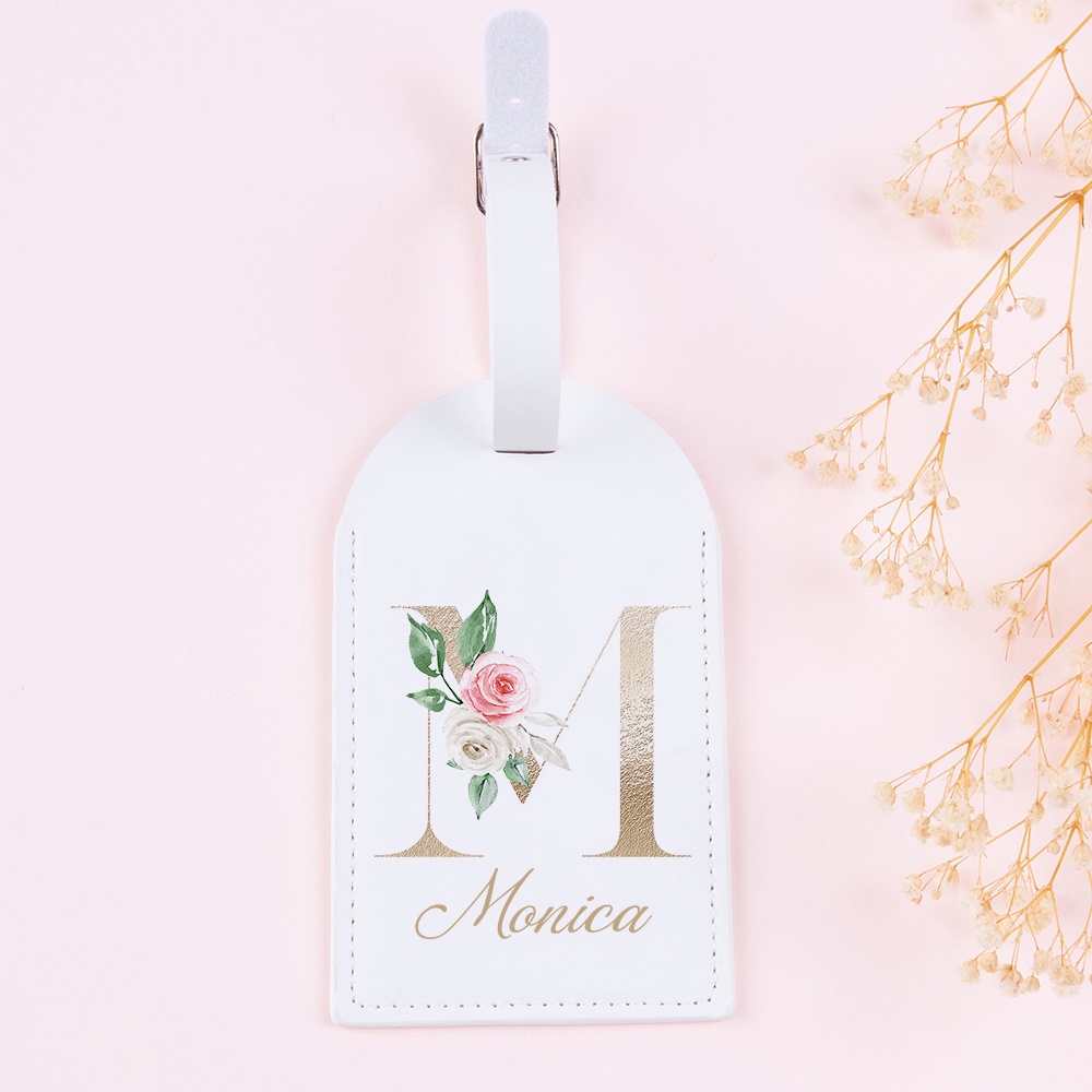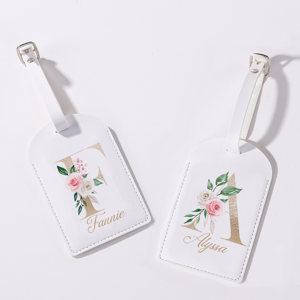 Initial with Name Suitcase Identifier Label Baggage Personalised PU Leather White Luggage Tag Boarding Bag Tags Travel Accessorie Gift