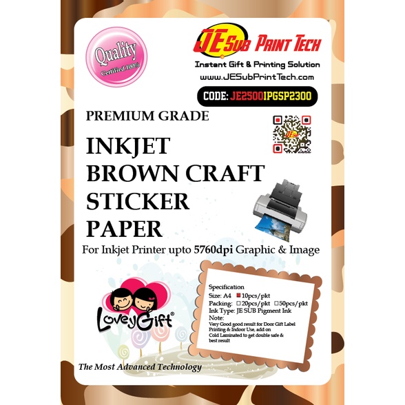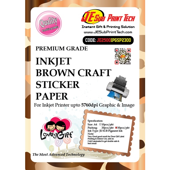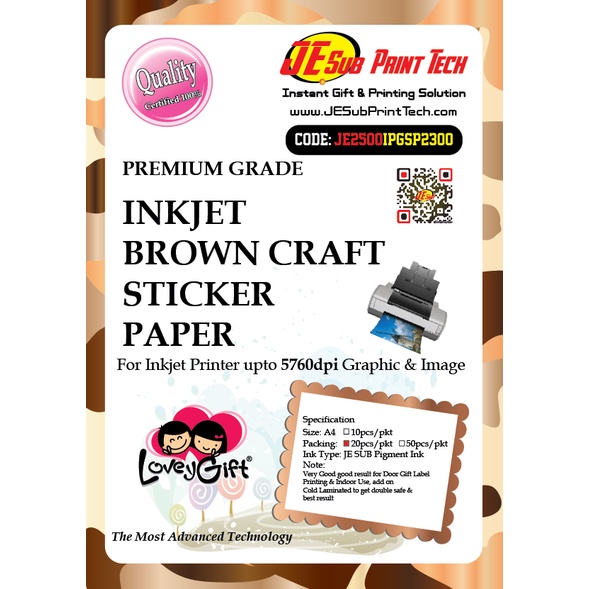 Inkjet Brown Craft Paper Sticker / Kraft Sticker/ Brown Sticker - Inkjet / Laser / Digital Printer