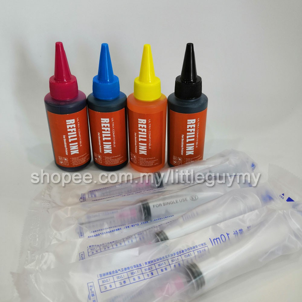 Inkjet Printer Refill Ink 100ml C,M,Y,K (4 Bottle) with 4 syringe and needle