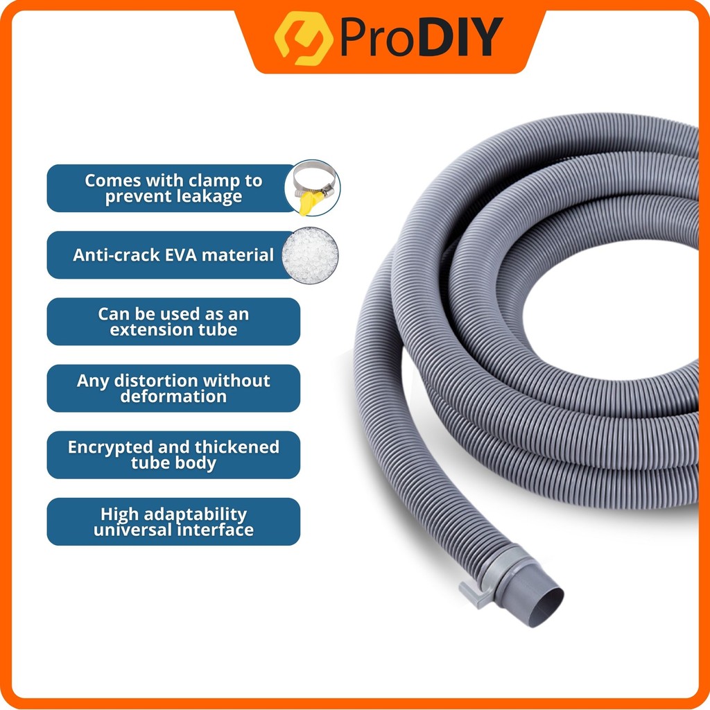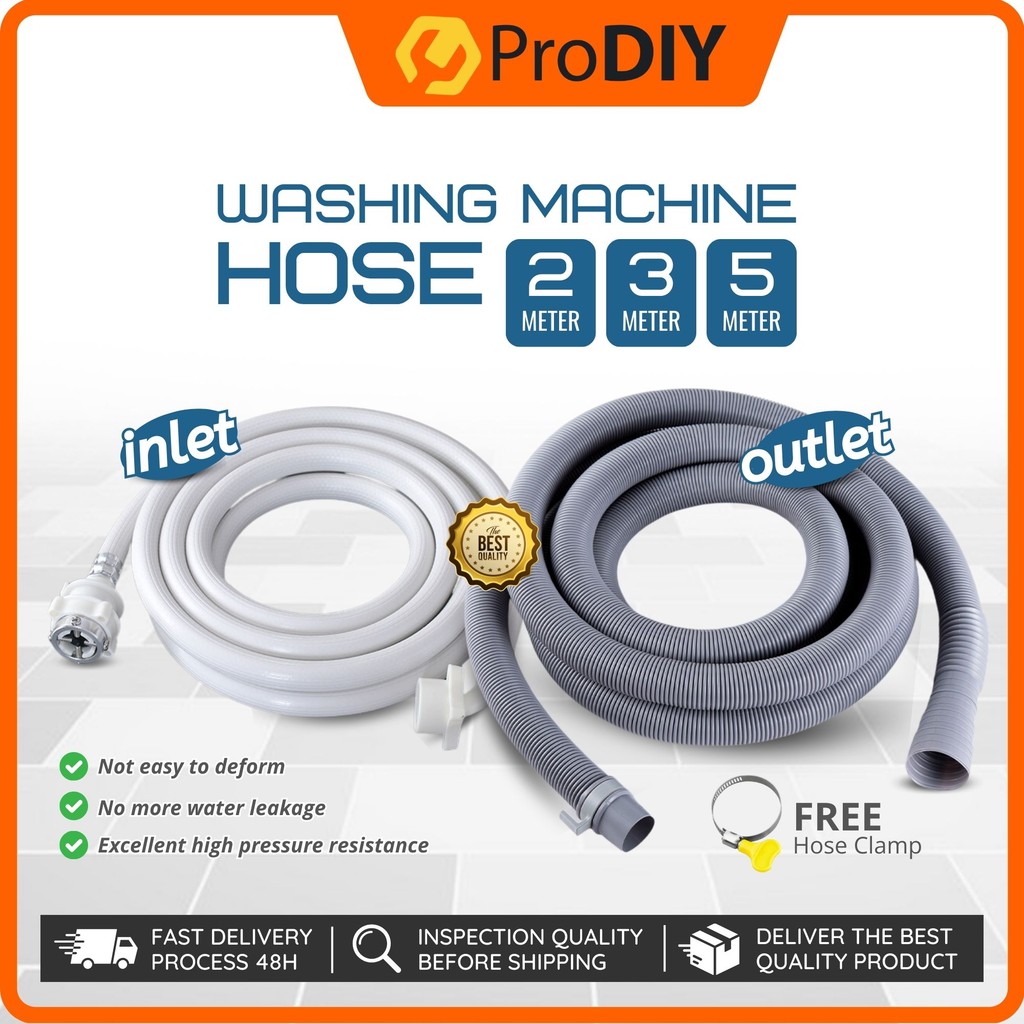 Inlet / Outlet Washing Machine Hose Drain Hose 2 / 3 / 5 Meter Washer Pipe Tube Connector High Quality Hos Mesin Basuh