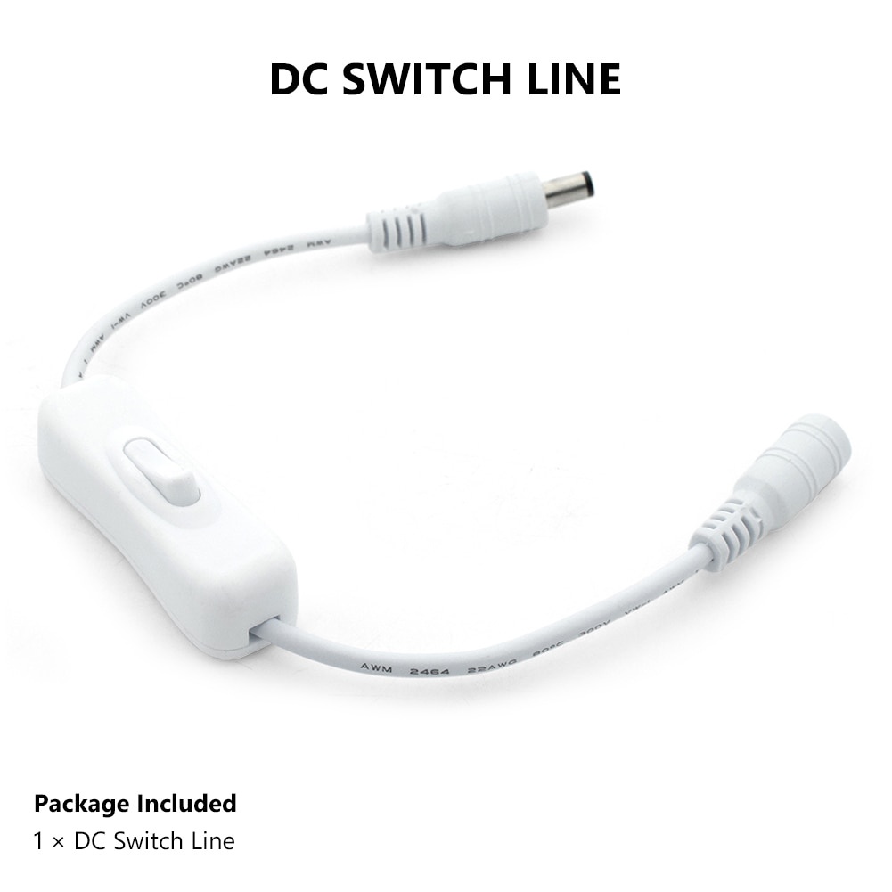 Inline Switch On Off with Female Male Power Cable 5.5x2.1mm DC Connector Jack Wire Switch 5V 12V 24V for CCTV LED Strip Light