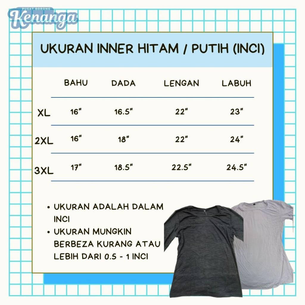 Inner Baju Lengan Panjang Hitam / Putih ( Saiz XL - 3XL )