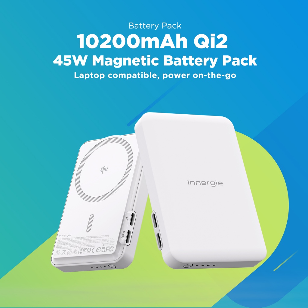 Innergie 10200mAh Qi2 45W Magnetic Power Bank PD3.0 USB-C Fast Charging Laptop, 15W wireless