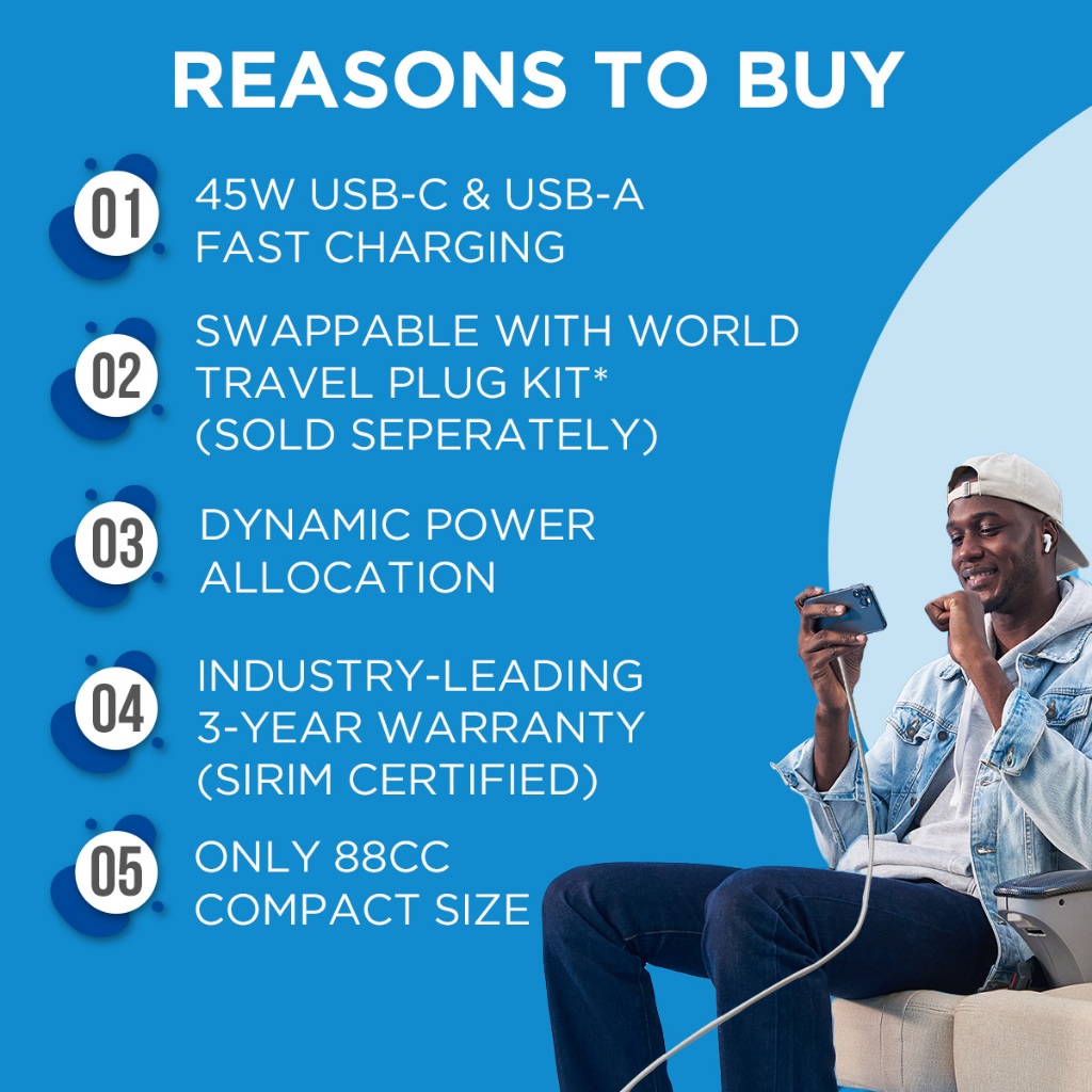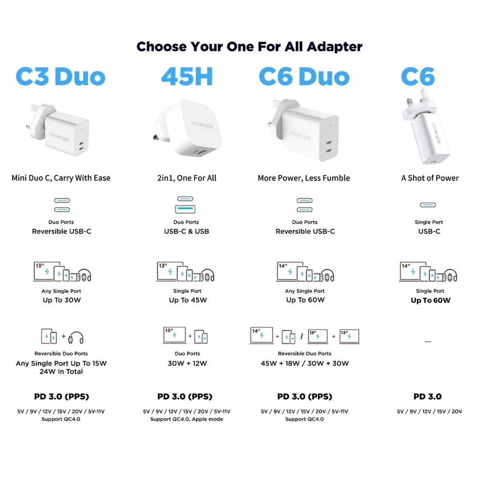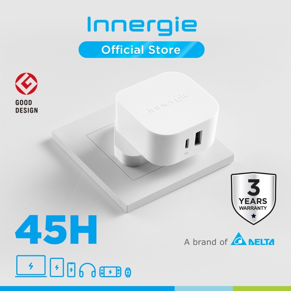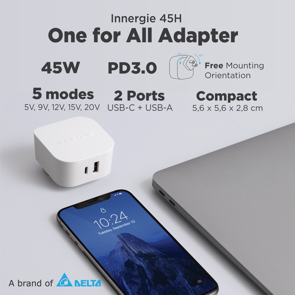 Innergie 45H USB-C Type C PD 3.0 Fast Charge Power Adapter Charger for iPhone 13/14/15 Pro Max/Samsung (45W)