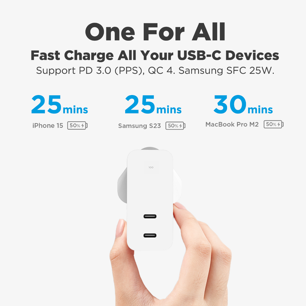 Innergie C10 Duo 100W Macbook Type-C High Power Charger Laptop Power Adapter, Samsung Fast Charger
