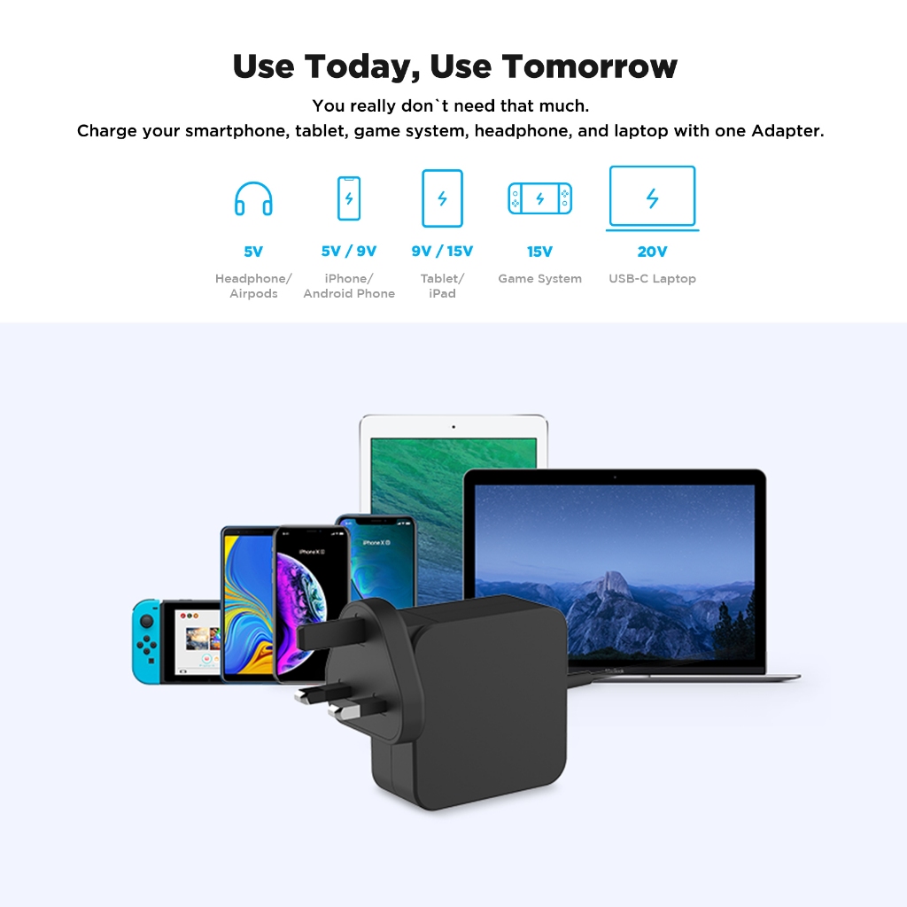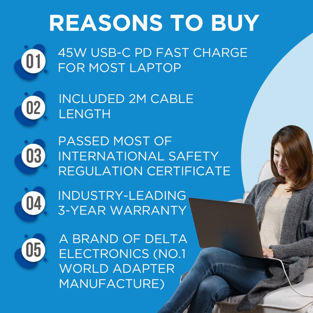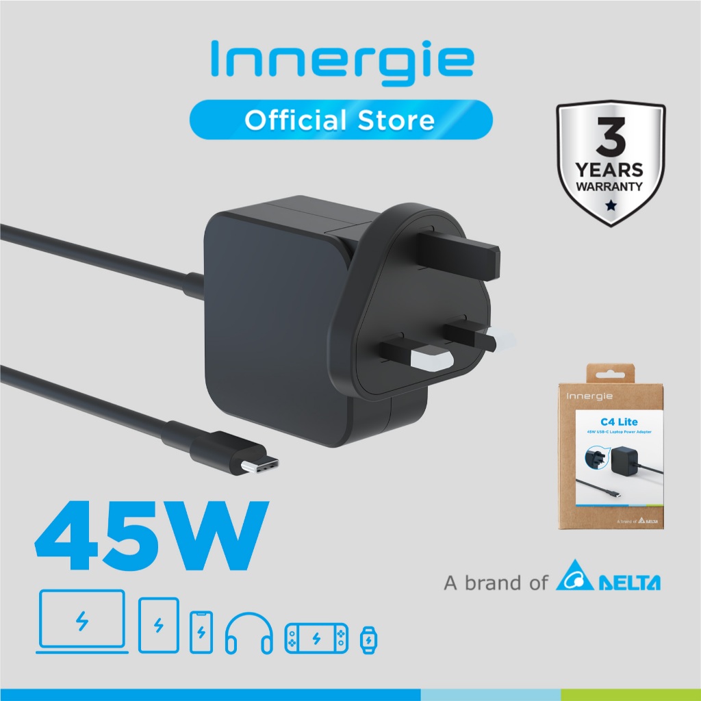 Innergie C4 Lite 45W USB-C Laptop Charger Power Adapter, PD 3.0, for Acer / ASUS / Dell / HP / Lenovo / MSI / iPhone 16