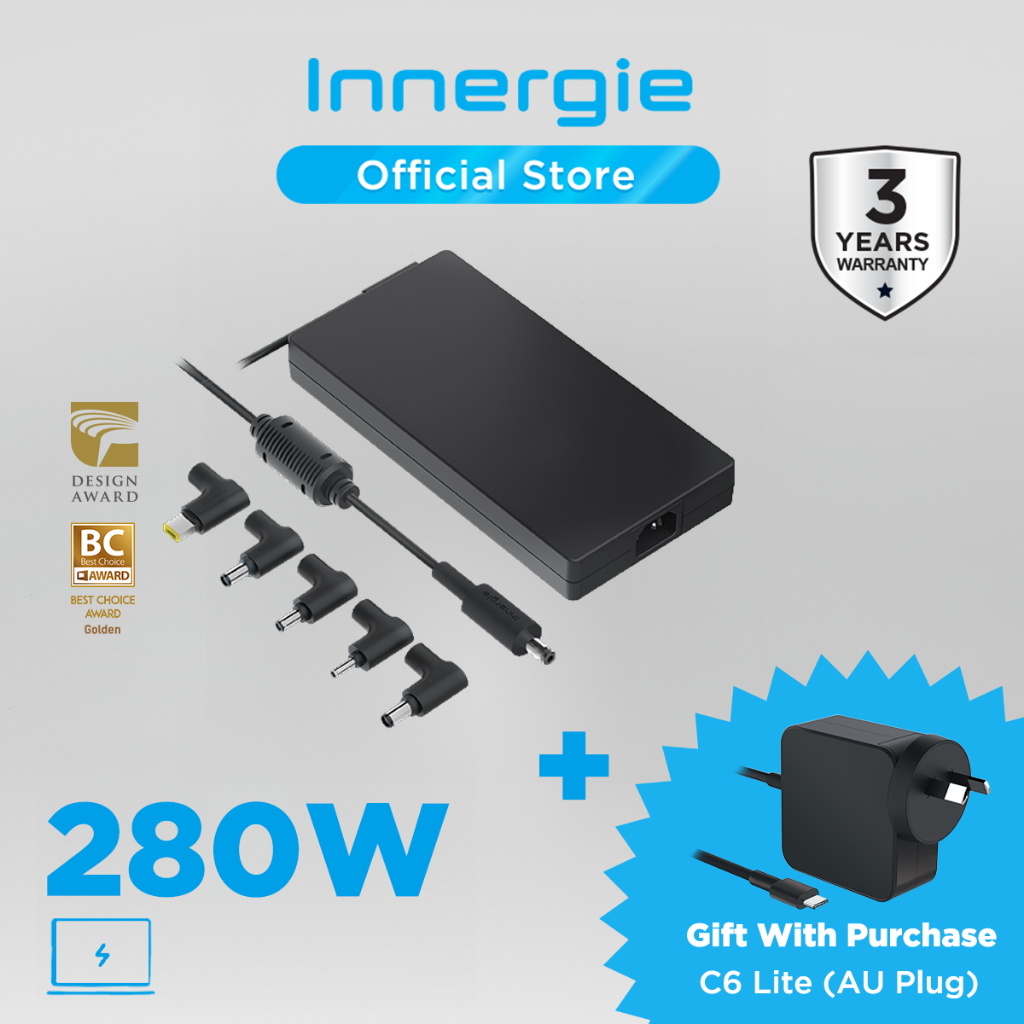 Innergie T28 280W 240W Gaming Laptop Adapter, for Acer / ASUS / ROG / Dell / Alienware / HP / Lenovo / MSI, SIRIM