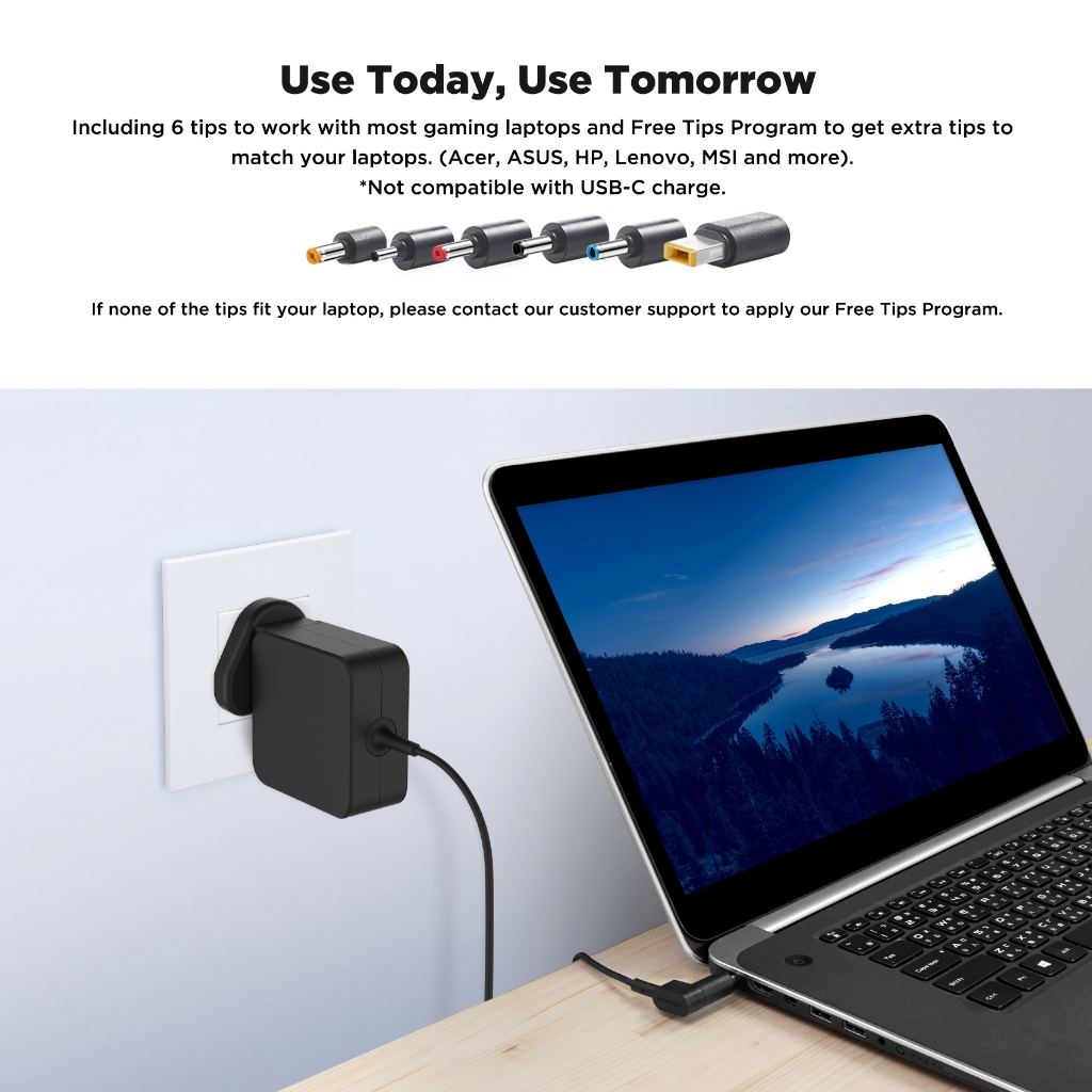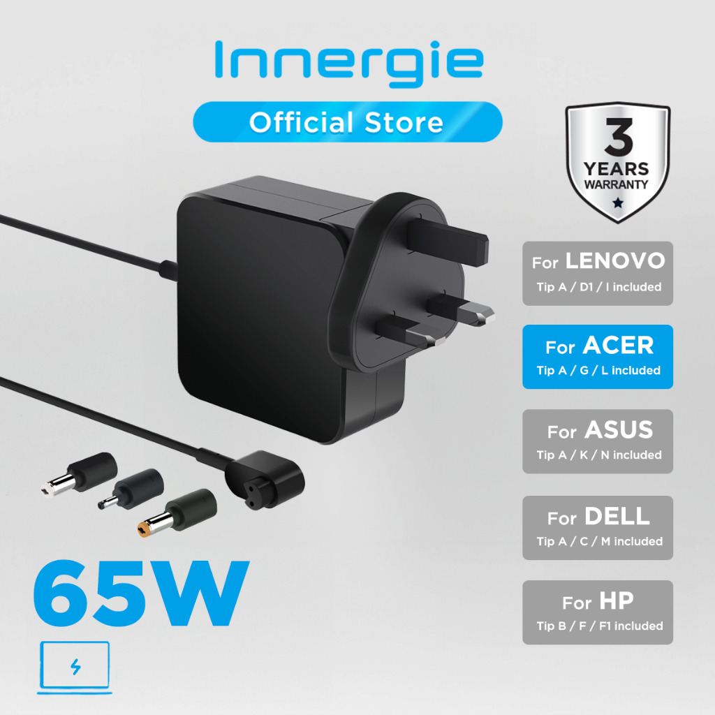 Innergie T6 65W Universal Laptop Charger Power Adapter - Compatible with Acer/ASUS/Lenovo/HP/Dell Windows PC Notebook