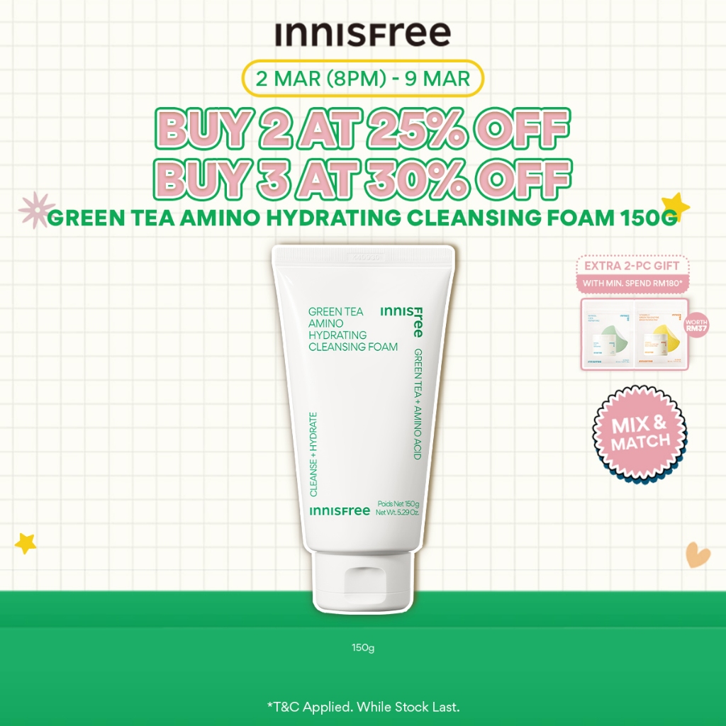 [2 MAR (8PM) - 9 MAR | BUY 2 GET 25% OFF | BUY 3 GET 30% OFF] INNISFREE Green Tea Amino Hydrating Cleansing Foam 150g