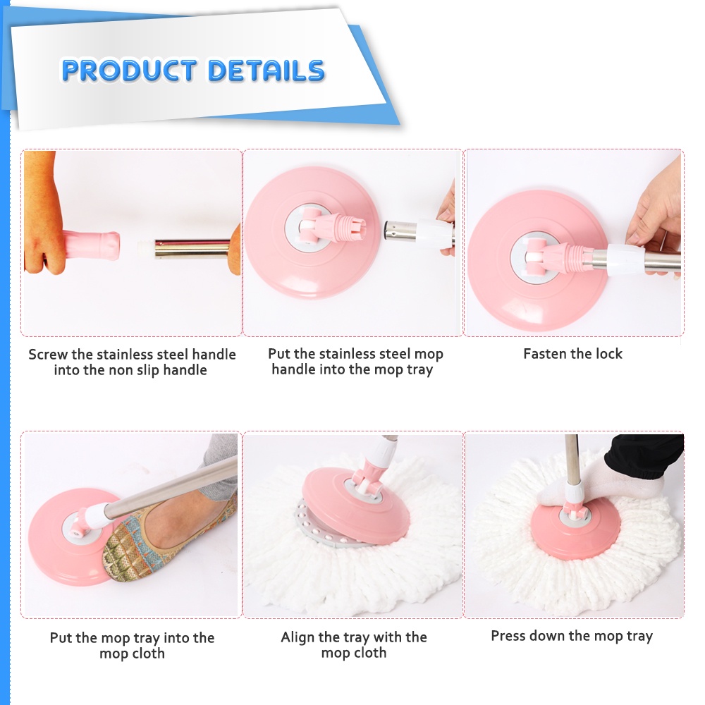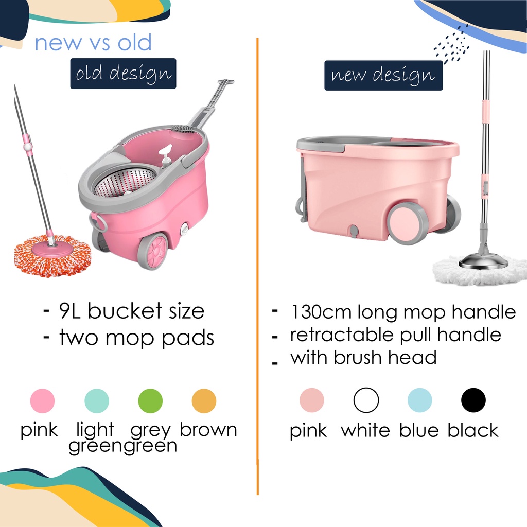 Innohut 360° Easy Spin Mop With Wheel Mop Lantai Colorful Spin Mop Set