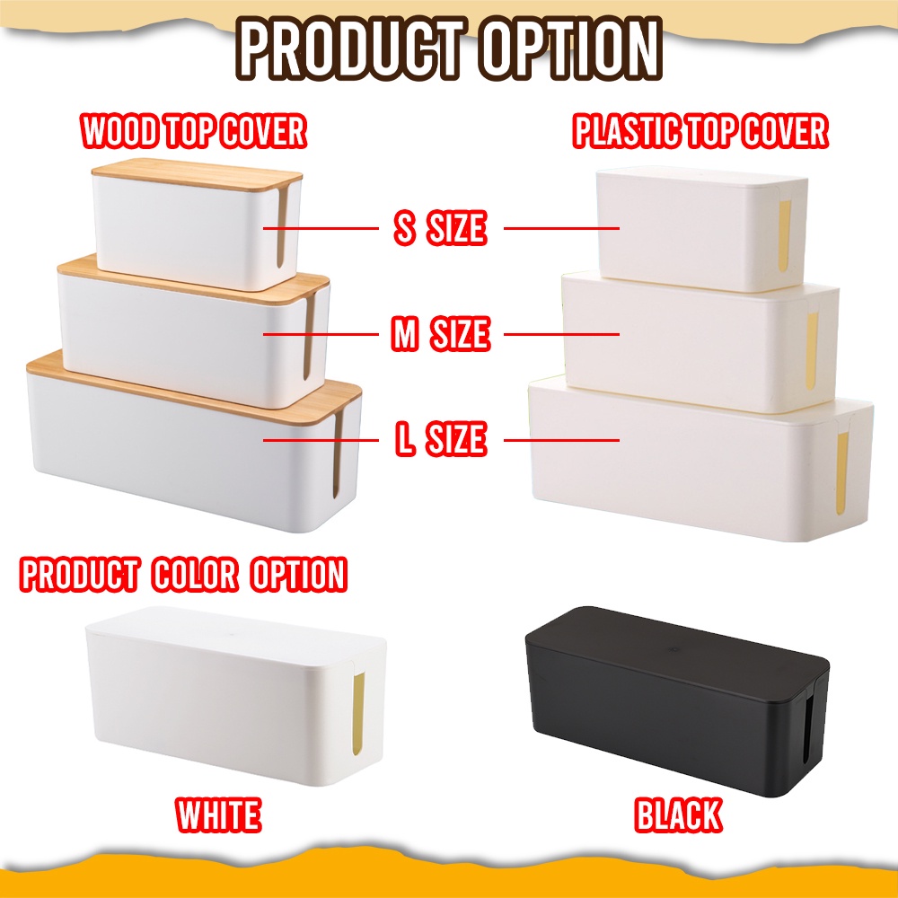 Innohut Cable Storage Box Wire Plug Hider Organizer Wooden Top Cable Box For Home Office Use Kotak Kabel