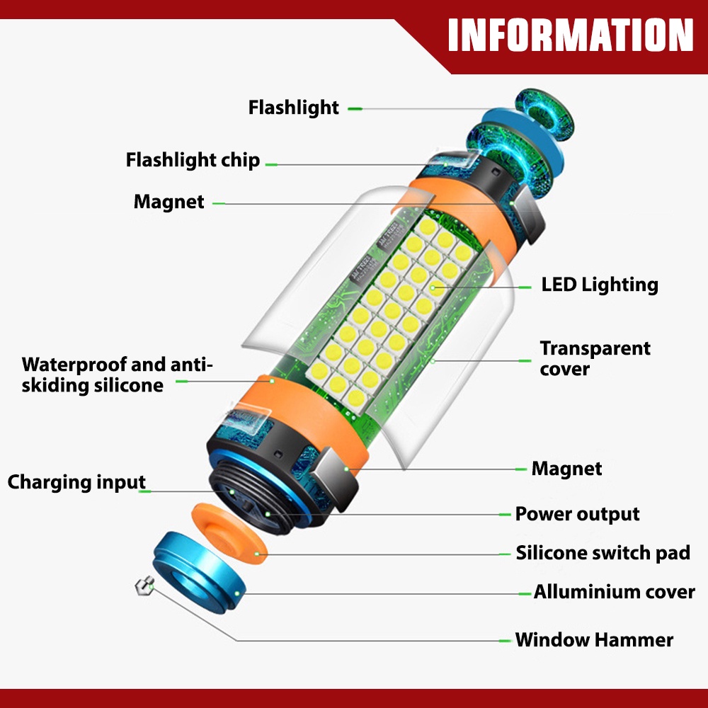 Innohut Rechargeable Magnetic Torchlight Stick Outdoor Camping Underwater Flashlight