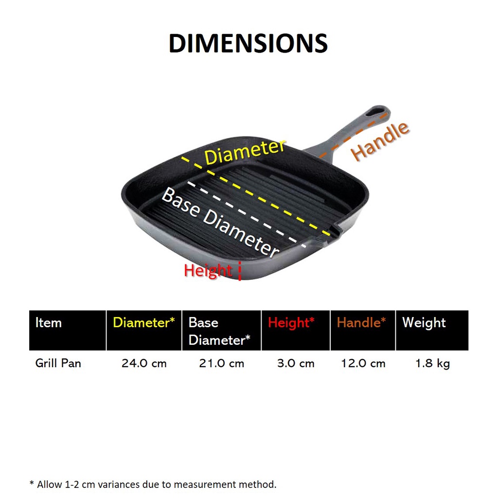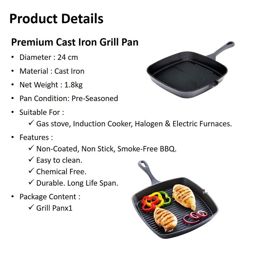 Innomax Natural Cast Iron Grill Pan BPA Chemical Free Durable 24cm BBQ Kuali