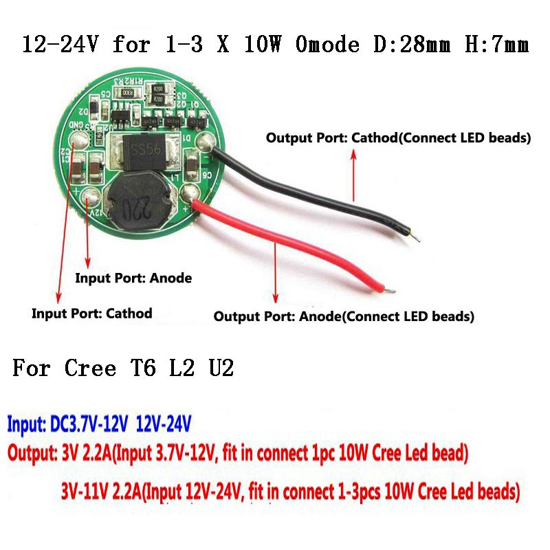 Input 12V~24V 28mm LED Driver For 1~3PCS Cree LED 10W XML T6 U2 XM-L2 flashlight 12V 24V Battery Car light