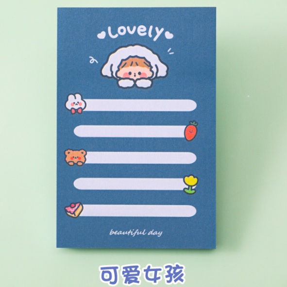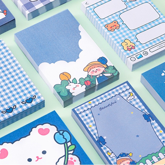 Ins Cute Blue Bear Series Cartoon Sticky Note Post It Memo/Message Pad Stationary School Student Office Supplies