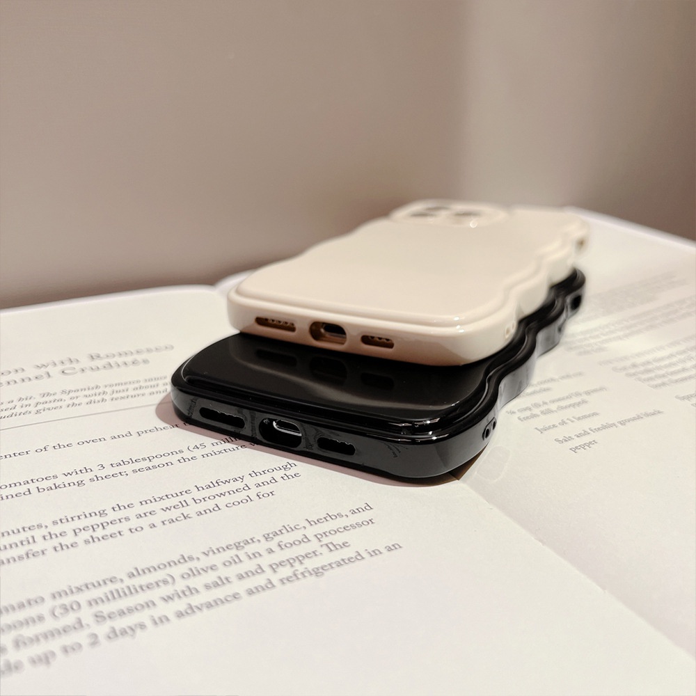 Ins Simple Beige Black Wavy Edge Silicone Case For Iphone 16 15 14 11 12 13 PRO MAX Casing Protective Cover