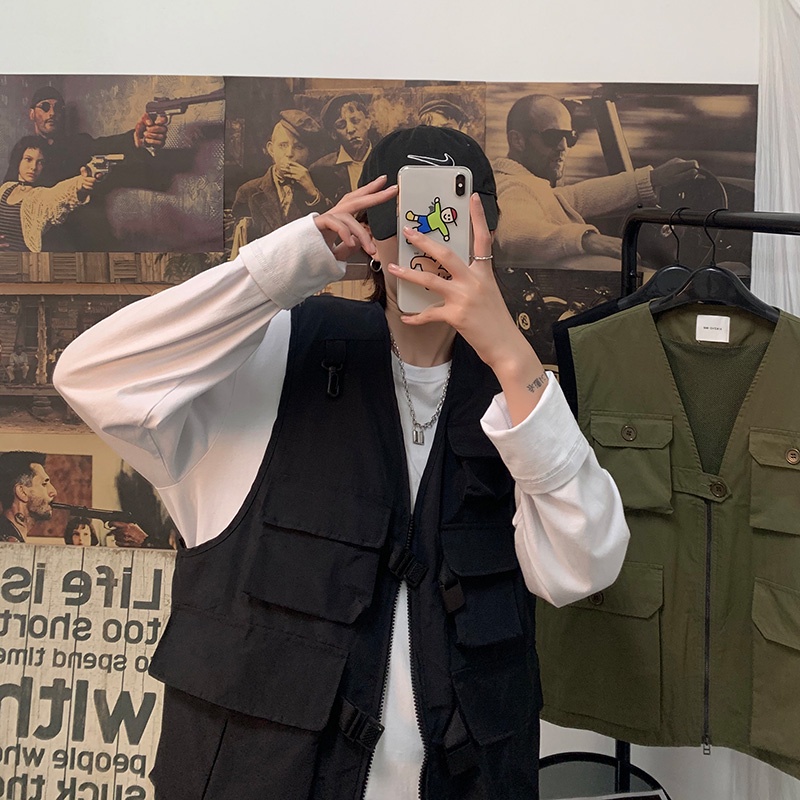 Ins functional wind tooling tactical vest men's spring and autumn tide brand trend hip hop vest coat summer