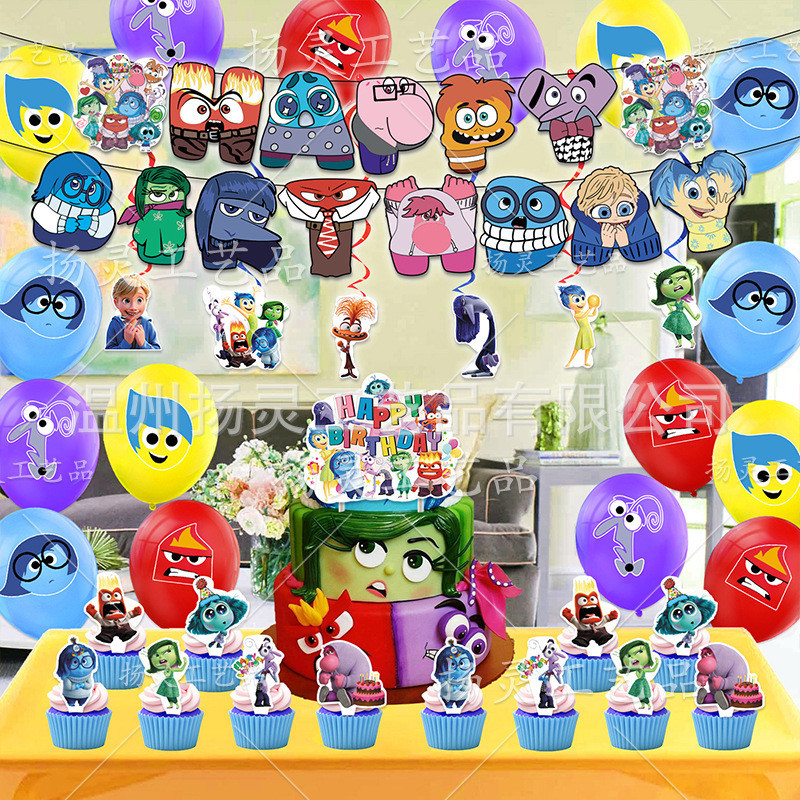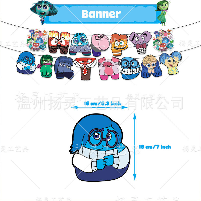 Inside Out Movies Theme Birthday Party Decoration Cute Cartoon Joy Banner Cake Topper Children's Supplies