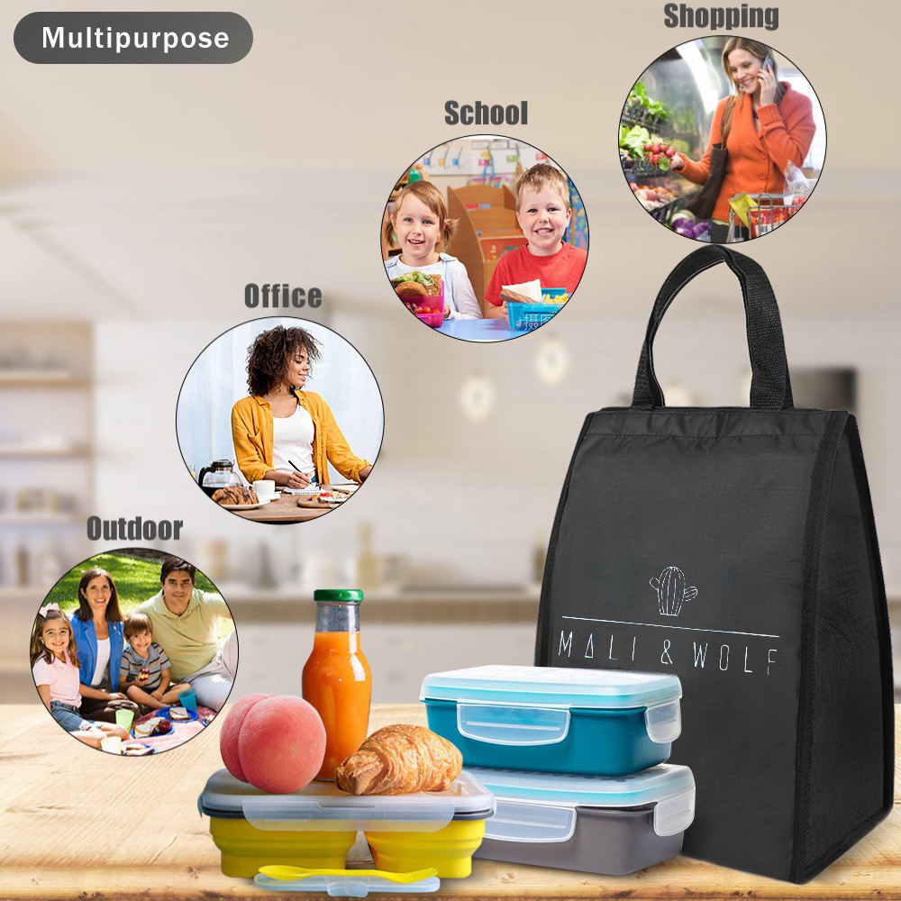Insulated Lunch Bag WaterProof With Side Pockets Lunch Box Bag Tote Bento Bag for Women&Men