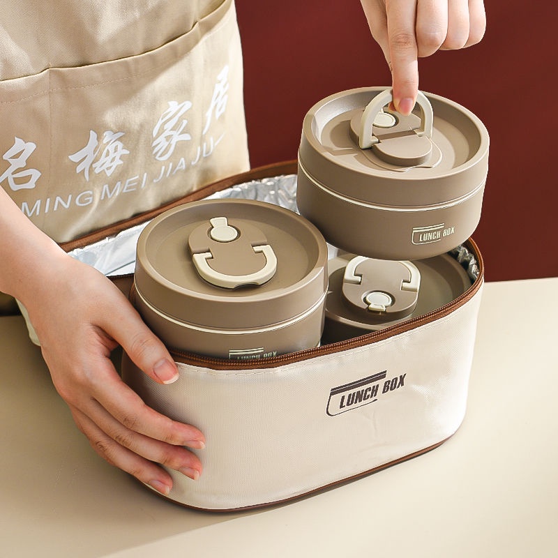 Insulated bento box 1 person portable office lunch box with lid soup bowl porridge cup lunch box (Free Carrier Bag)