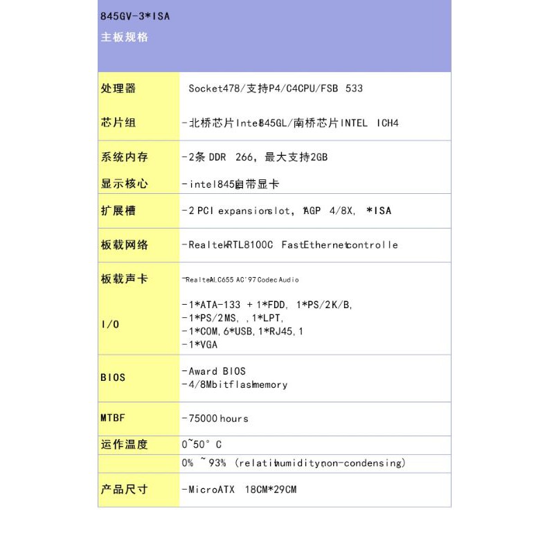 Intel 845 ISA MOTHERBOARD- 478 socket