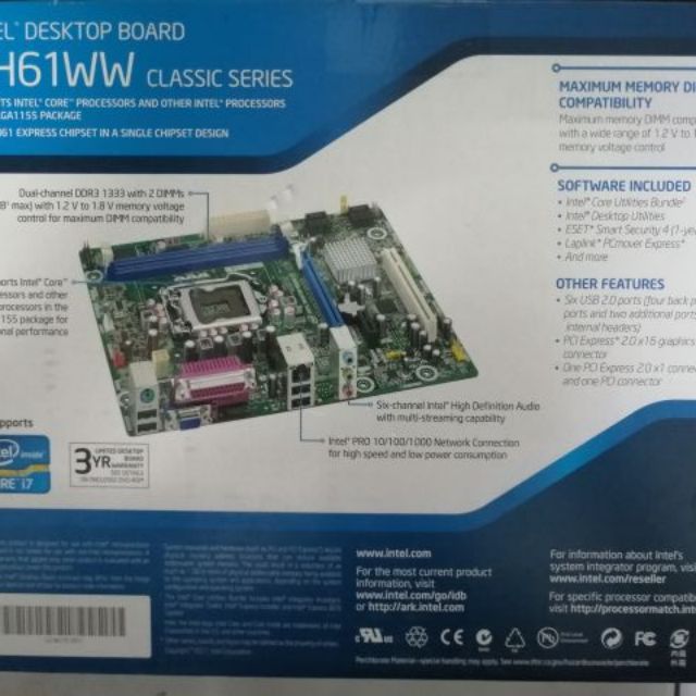 Intel Desktop Board DH61WW LGA 1155 - Ready stock