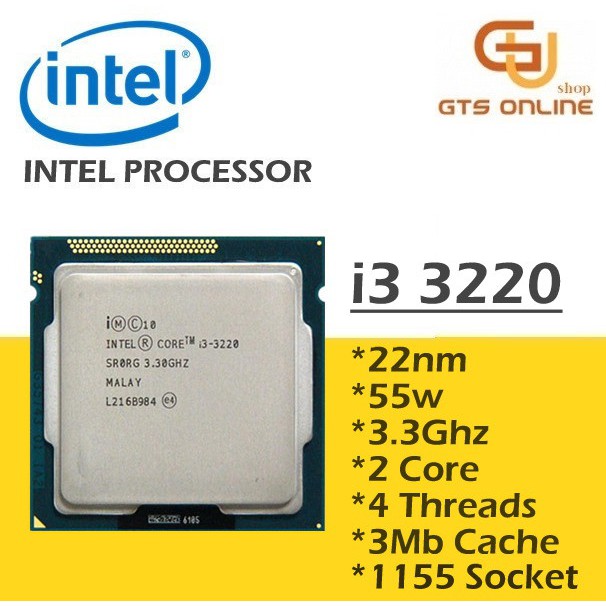 Intel Processor Core i3 2120/3220/3240 Core i5 3330 Socket 1155 H61/B75