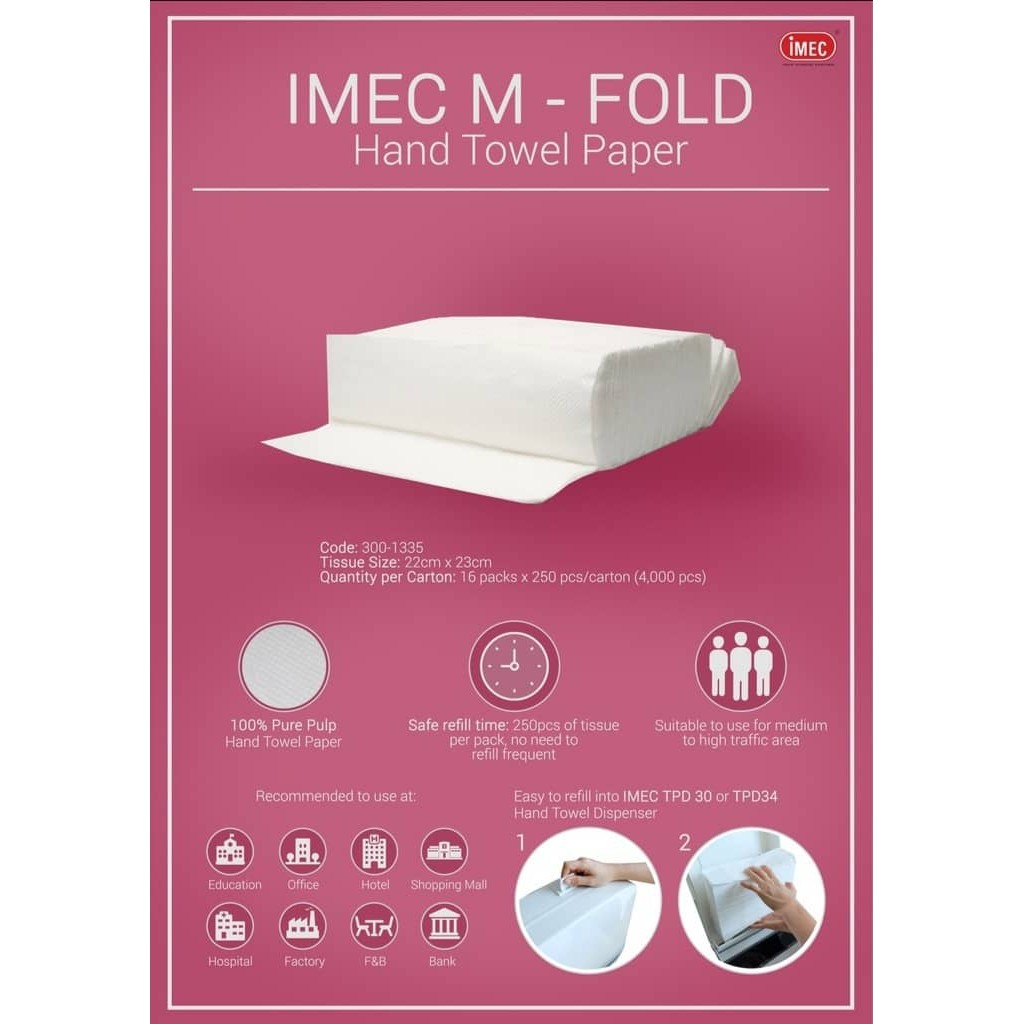 300-1335-00 Interfold Paper Towel, 100% Go Green, IMEC M-Fold (16 packs/box)