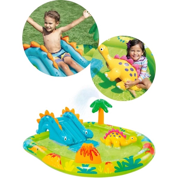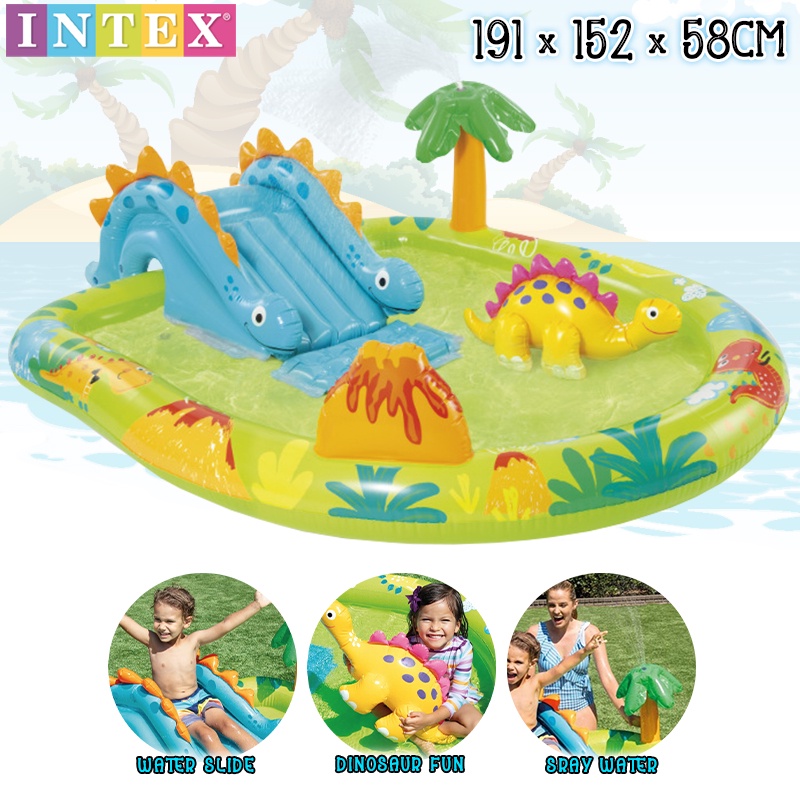 Intex 57166 Little Dino Dinosaur Themed Inflatable Swimming Pool Backyard Play Center With Slide Kolam Mandi Gelongsor