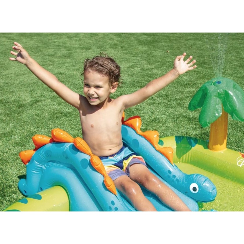 Intex 57166NP Little Dino Dinosaur Themed Inflatable Pool Backyard Play Center With Slide Kolam Dengan Gelongsor