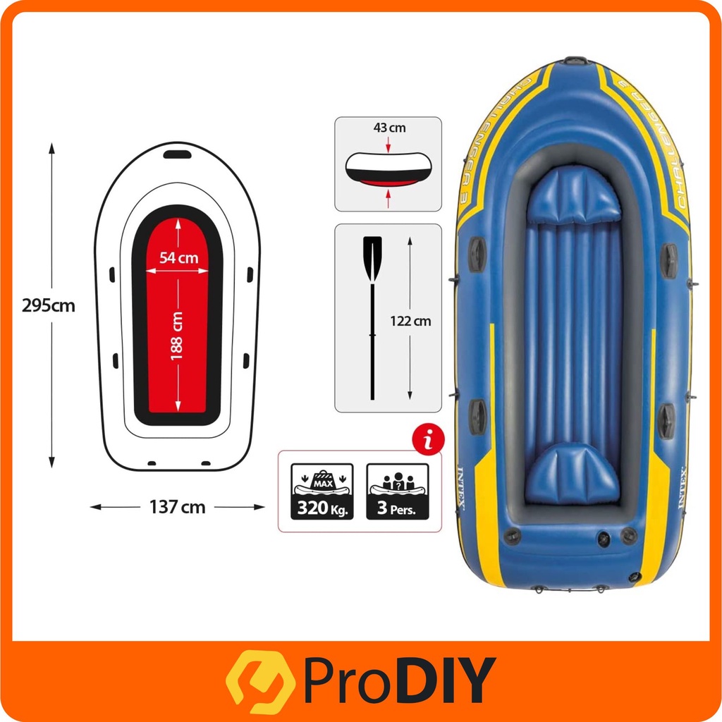 Intex Inflatable Boat Set Challenger / Seahawk Fishing Or Kayak Boat With Aluminium Oars And Hight Output Air Pump