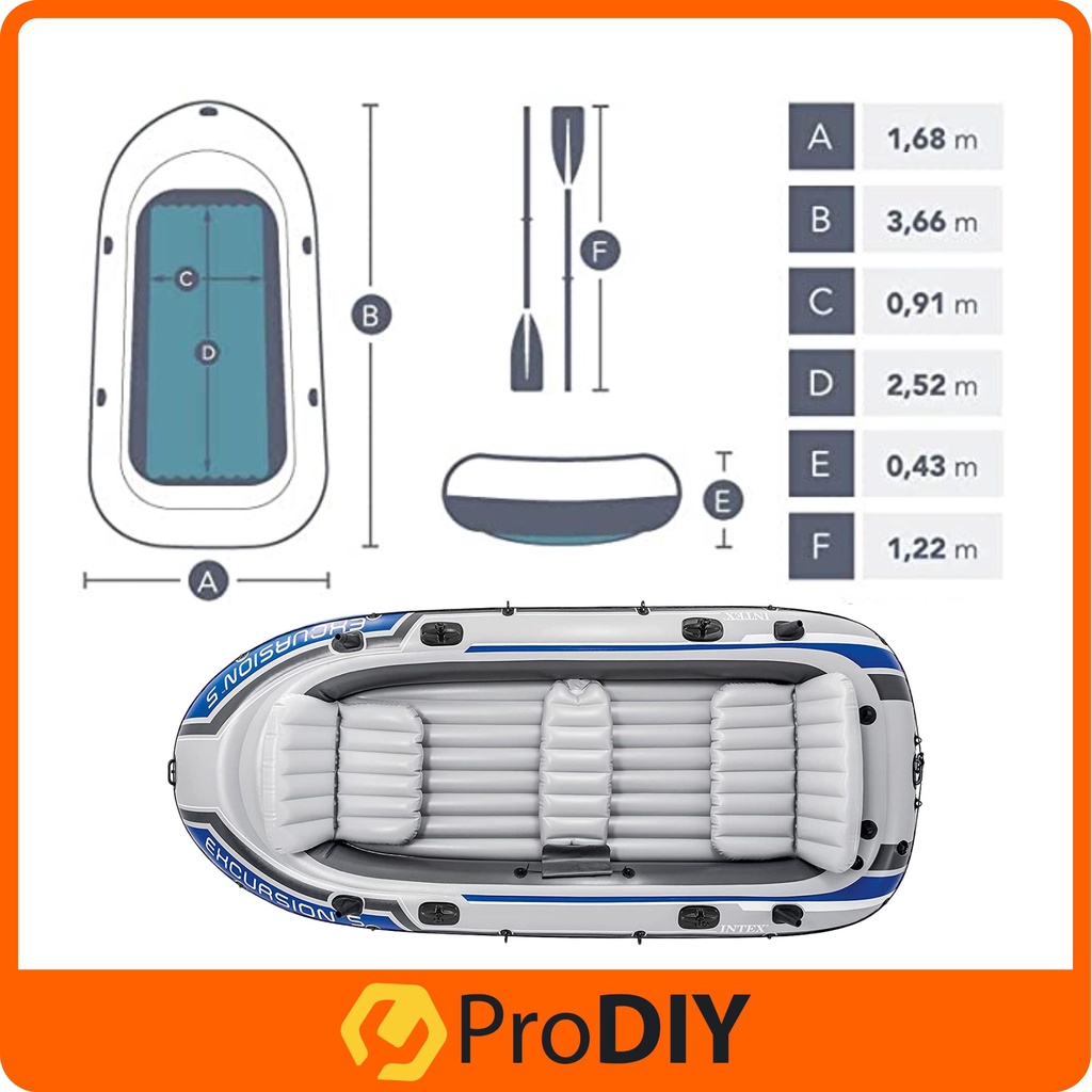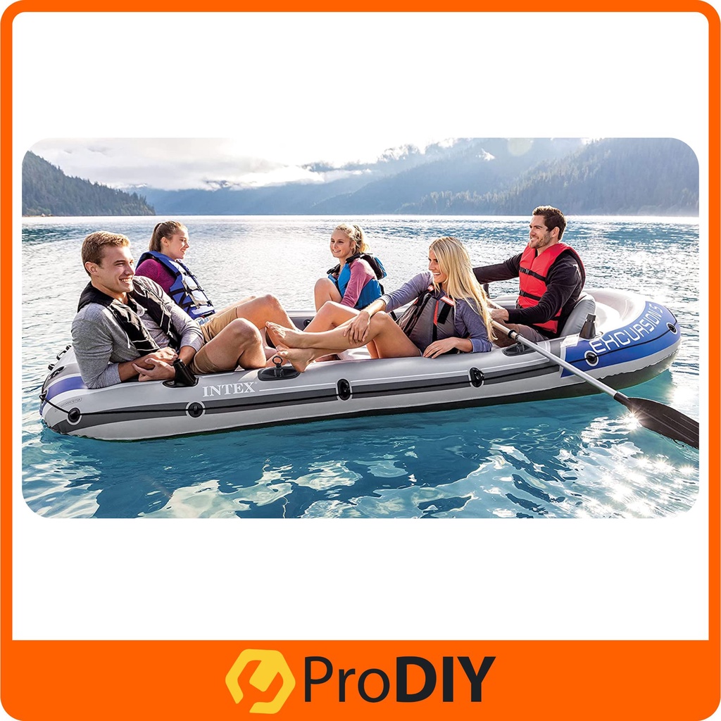 Intex Inflatable Boat Set EXCURSION Fishing Or Kayak Boat With Aluminium Oars And Hight Output Air Pump