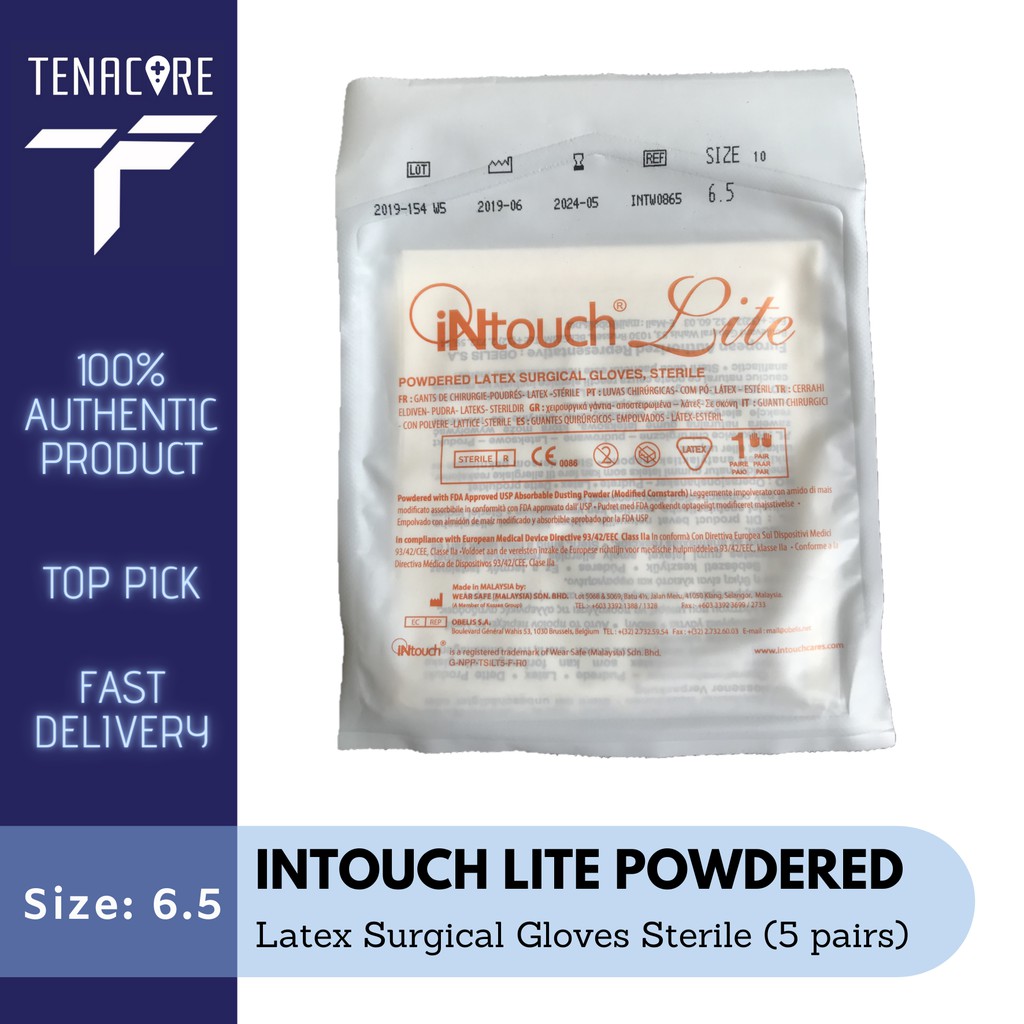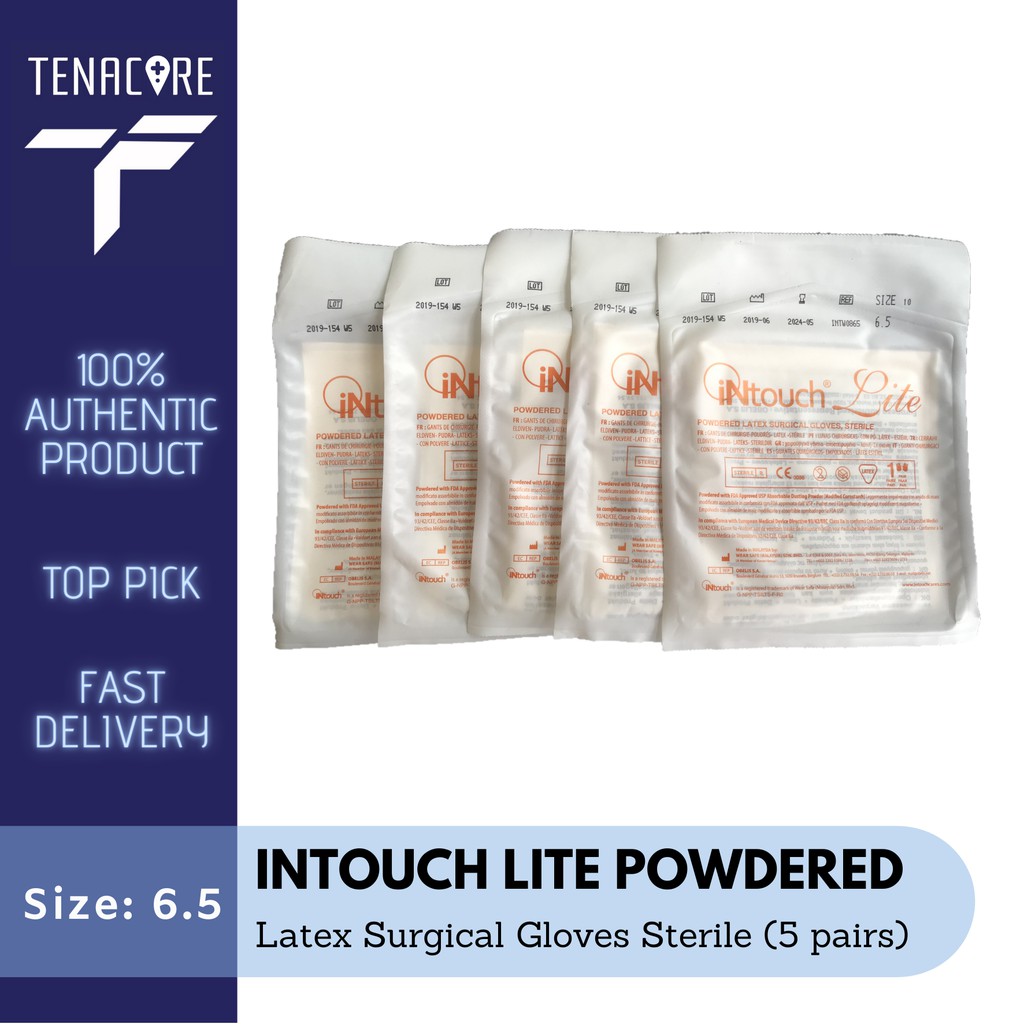 Intouch Powdered Latex Surgical Gloves, Sterile (5 pair)