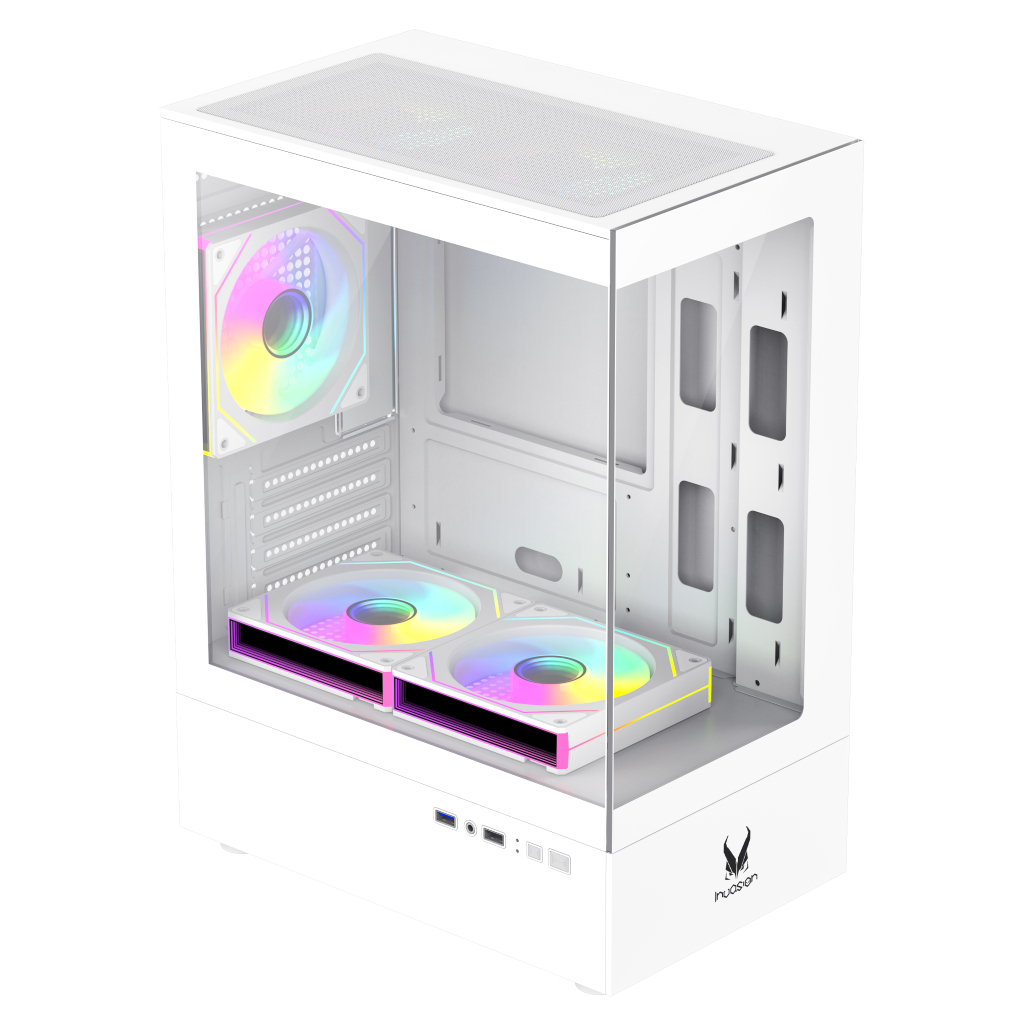 Invasion S-1000 Compact M-ATX Gaming Case - Black/White With Aurora Fan