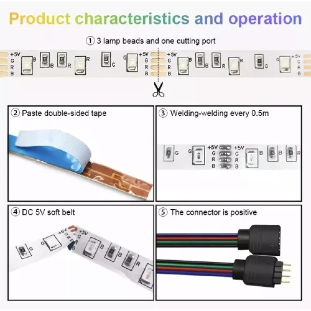 Ip65 Waterproof Multi-Color Led Strip 5 Meters 300 LEDs + 12V 24 Key Infrared Control Adapter + 220V-12V Power Supply
