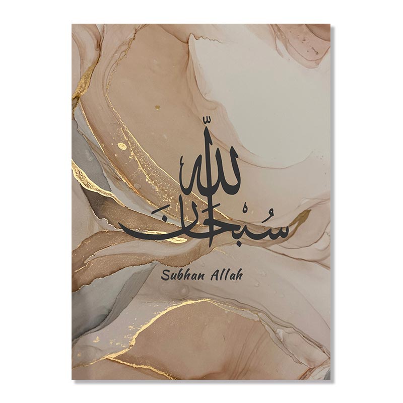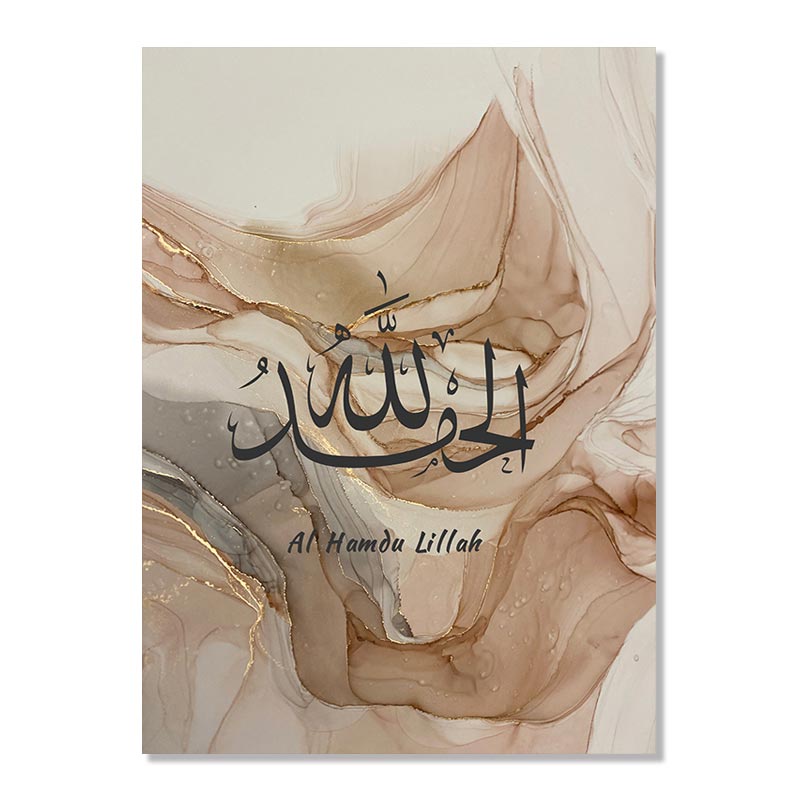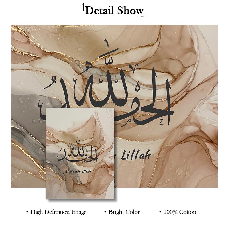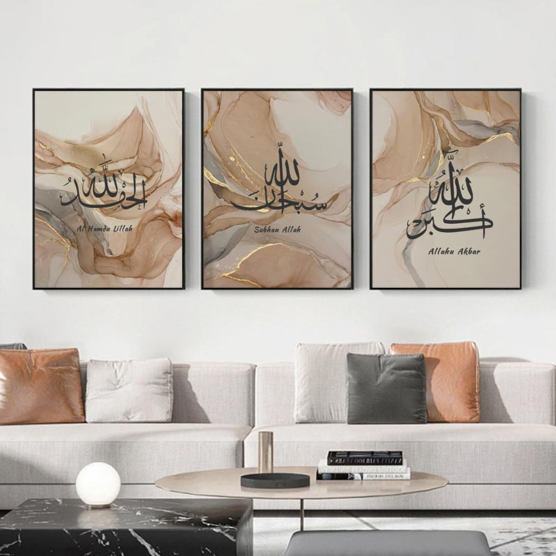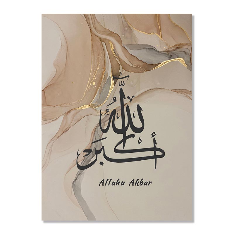 Islamic Calligraphy Allahu Akbar Posters Beige Marble Canvas Painting Abstract Gold Luxury Home Decor Wall Art Living Room Decor