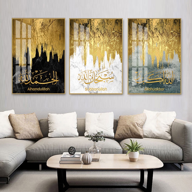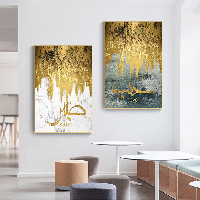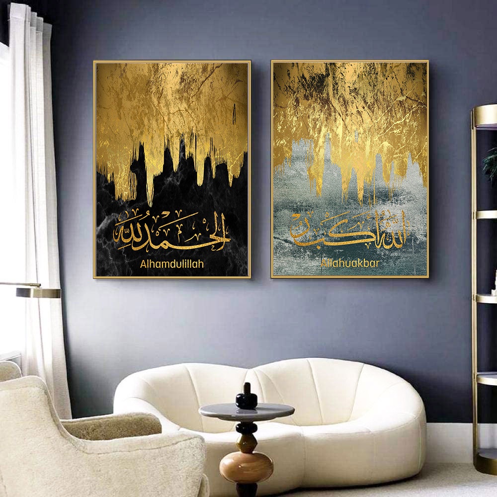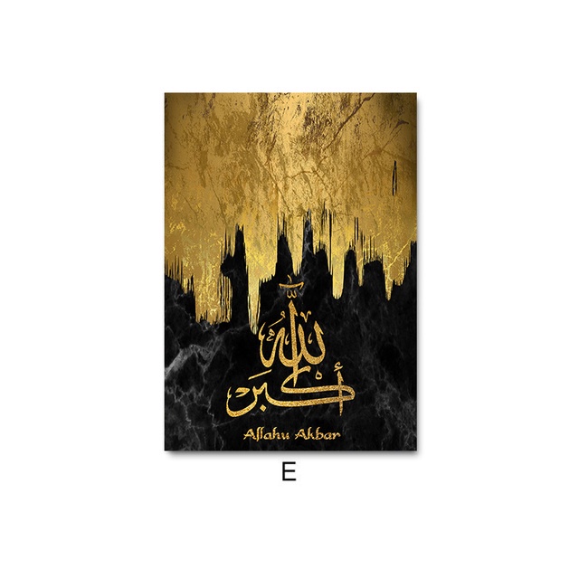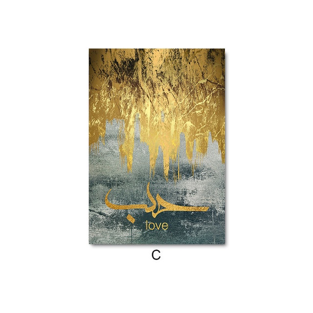 Islamic Calligraphy Wall Art Canvas Painting Gold Abstract Muslim Wall Poster Prints Muslim Picture Home Room Decor