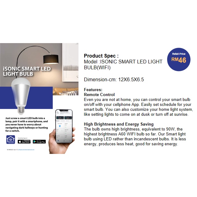 Isonic Smart LED Light Bulb LB-ID001