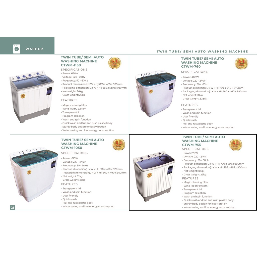 Isonic Twin Tube/Semi Auto Washing Machine (7.5kg) CTWM-755