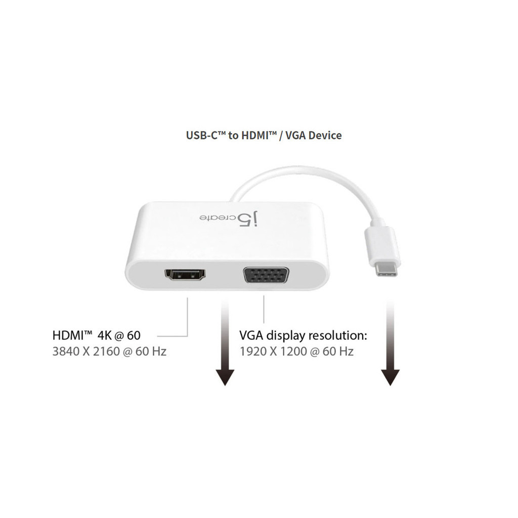 J5 CREATE JCA174 TYPE-C to VGA/HDMI ADAPTER CABLE