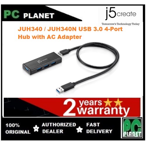 J5 Create JUH340 / JUH340N USB 3.0 4-Port Hub with AC Adapter