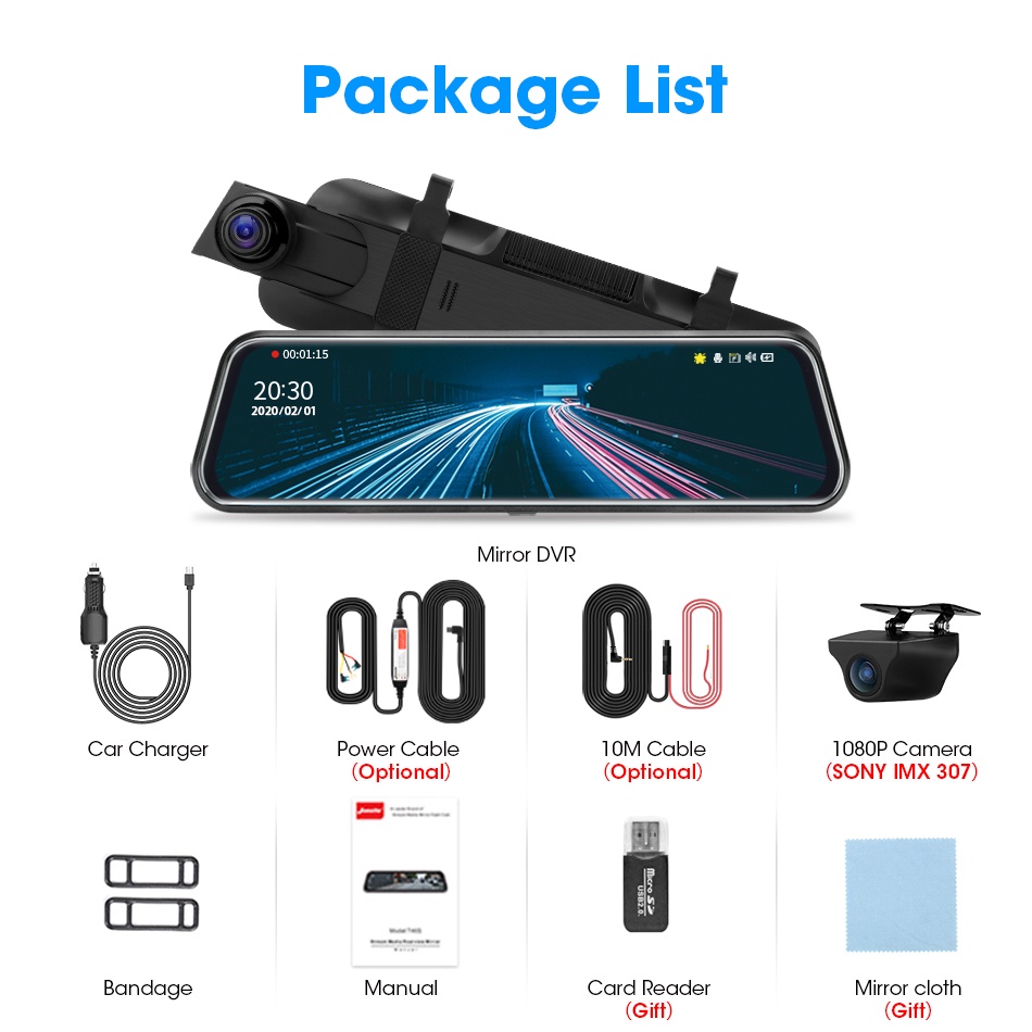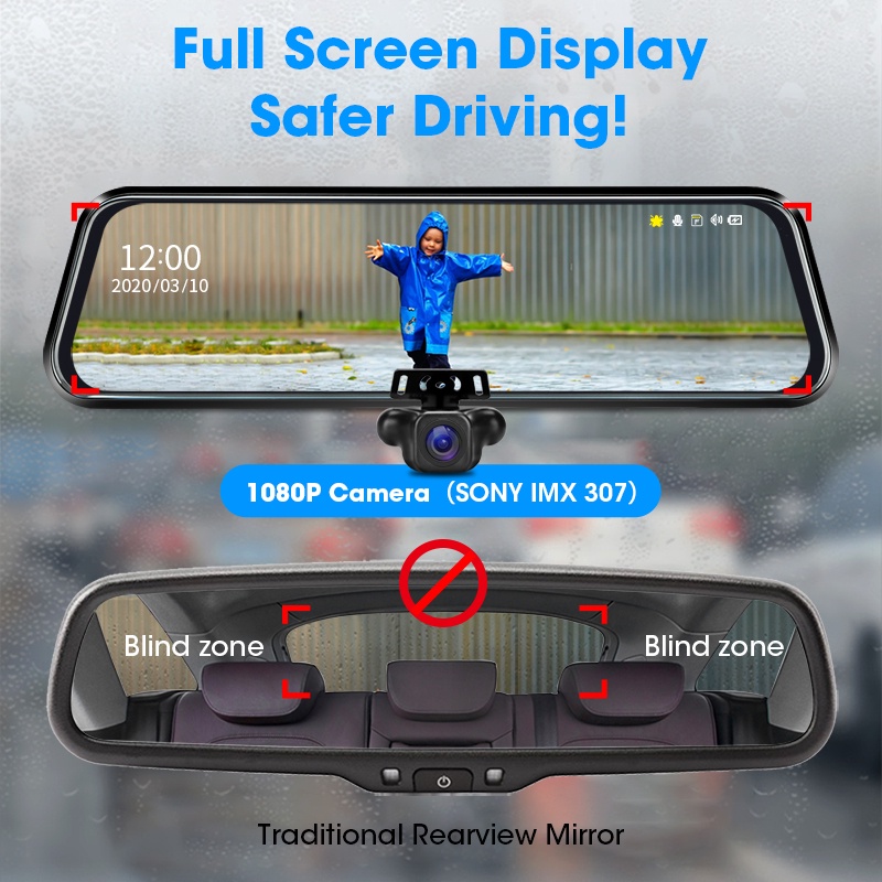 JADO 10 inch Mirror 1080P Car DVR Stream Media Super Night Vision Touch Screen Car Camera dash cam Parking Mode recorder