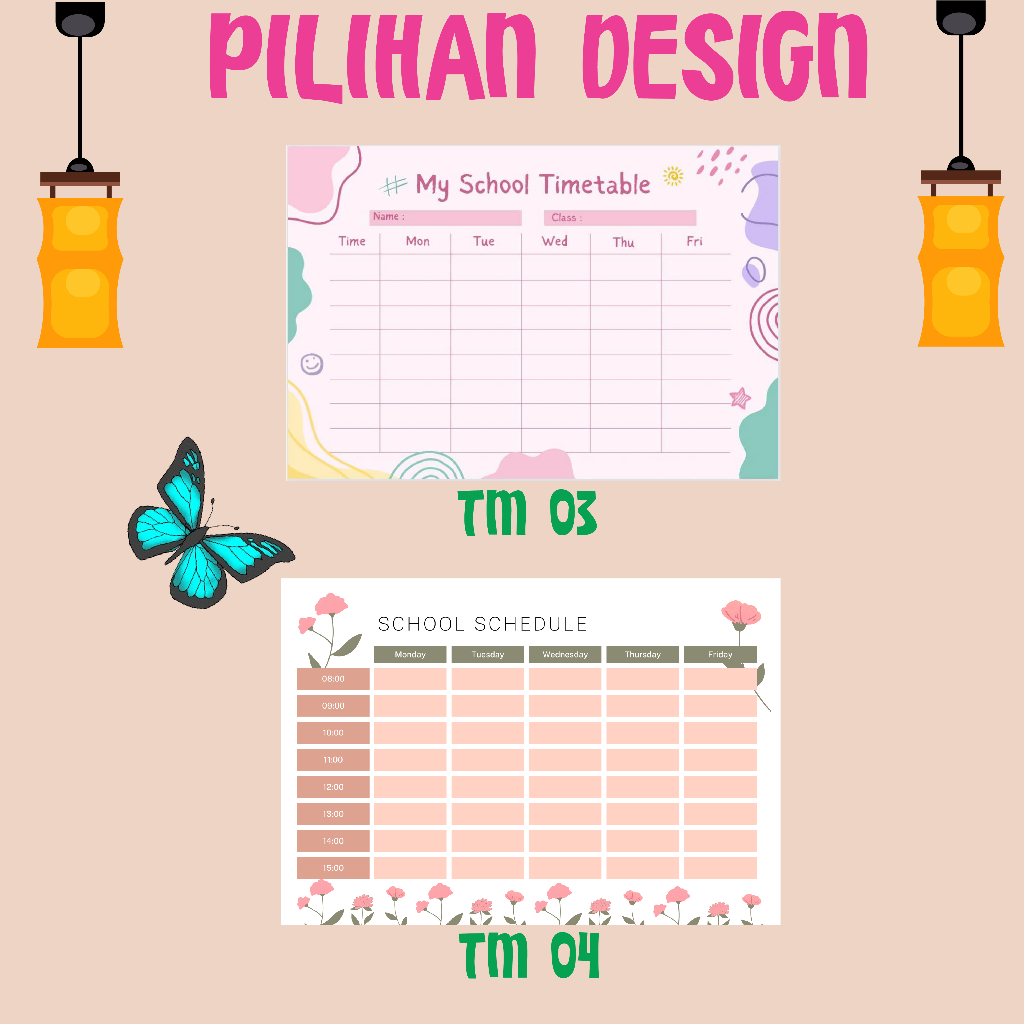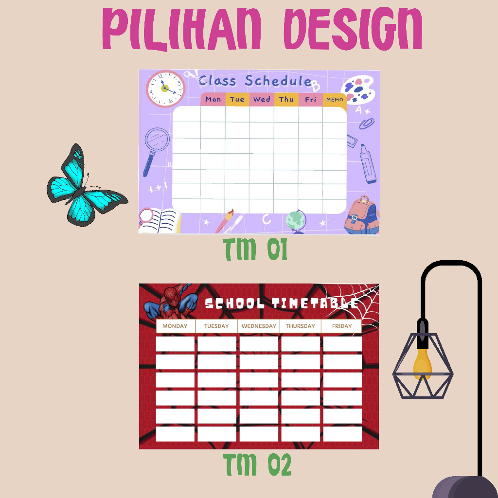 JADUAL WAKTU KELAS BOLEH UBAH | JADUAL SAIZ A4 A3 | CLASS TIMETABLE | JADUAL BERTEMAKAN CARTOON