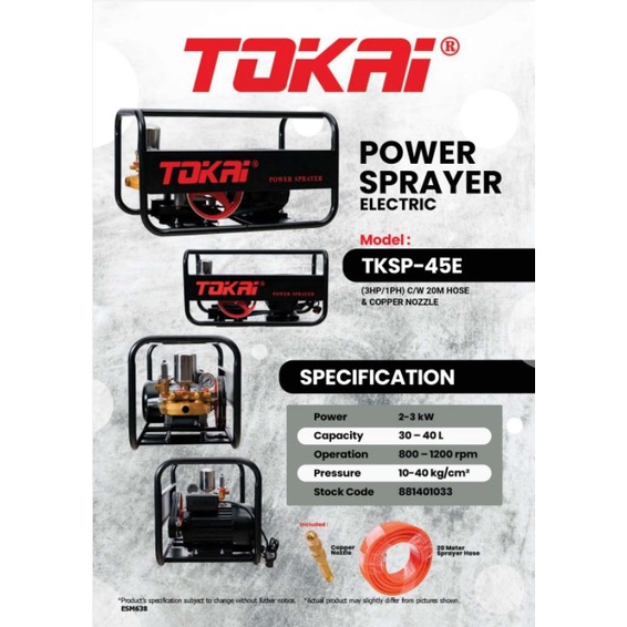 JAPAN TOKAI 3hp Electric Power Sprayer Complete Set For Car Wash / Chemical Sprayer