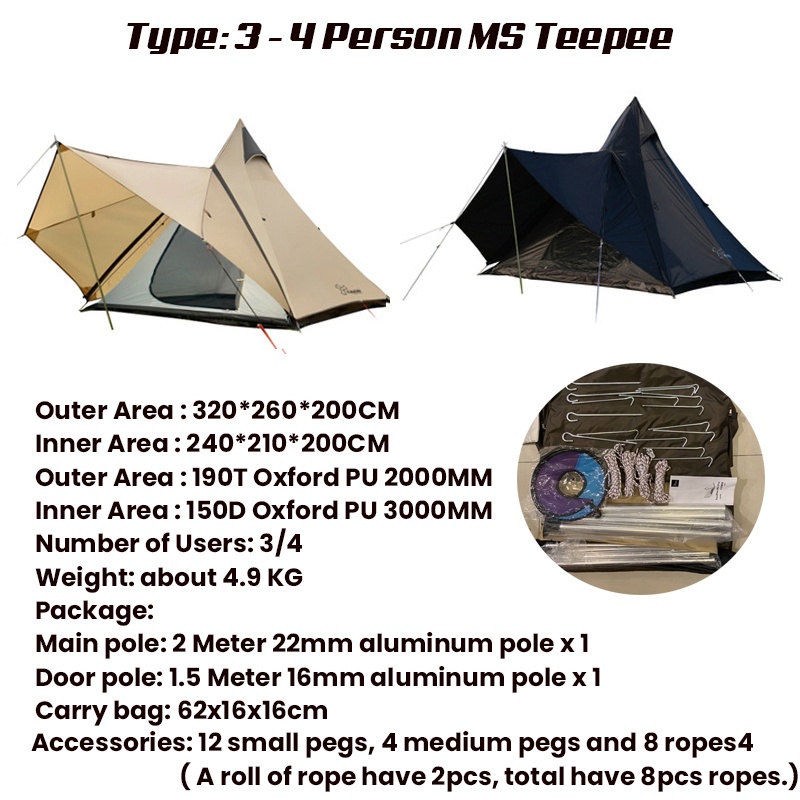 JDEX VIDALIDO Teepee MX Pro Indian Style Pyramid Tent Waterproof Double Layer Khemah Camping Khemah Unta Kemah