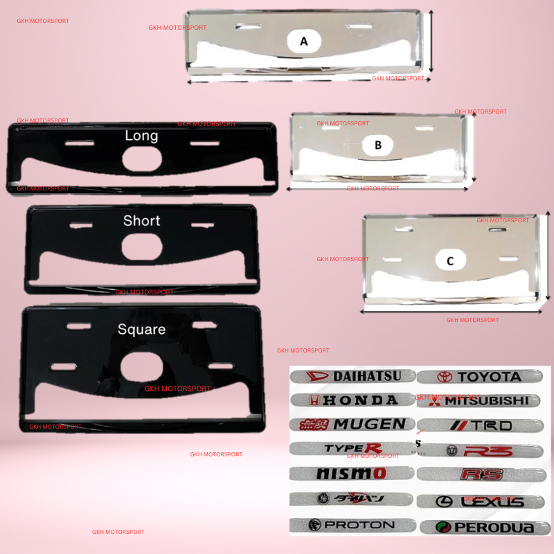 JDM JAPAN STEEL STYLE BLACK CHROME SILVER NUMBER PLATE FRAME COVER LONG SHORT SQUARE PROTON PERODUA TOYOTA HONDA TRD R3