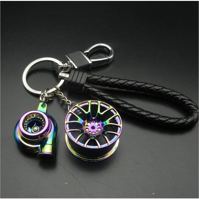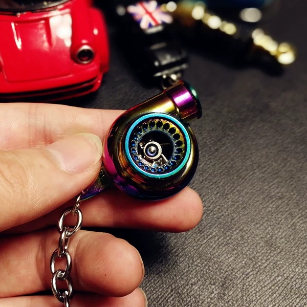 JDM Rotating Turbine Keychain Hot Auto Parts Model Turbo Turbocharger Sleeve Bearing Keychain Keyring