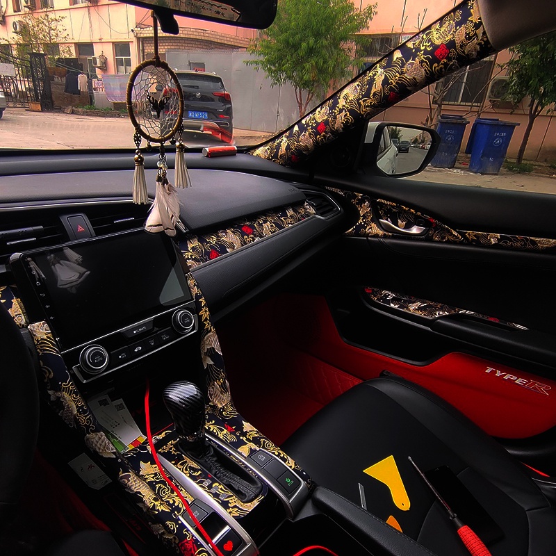 JDM Self-adhesive adhesive and wind cloth floating world painting car and motorcycle interior modified Japanese style ABC column hot gold cotton stickers