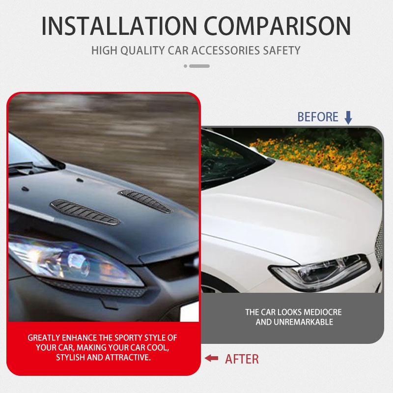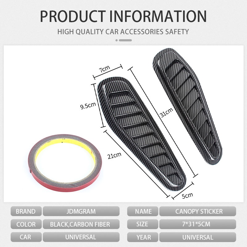 JDMGRAM Carbon Fiber Car Air Flow Sticker Universal 2pcs Auto Intake Hood Scoop Vent Bonnet Cover Decoration Automobile Exterior Accessories