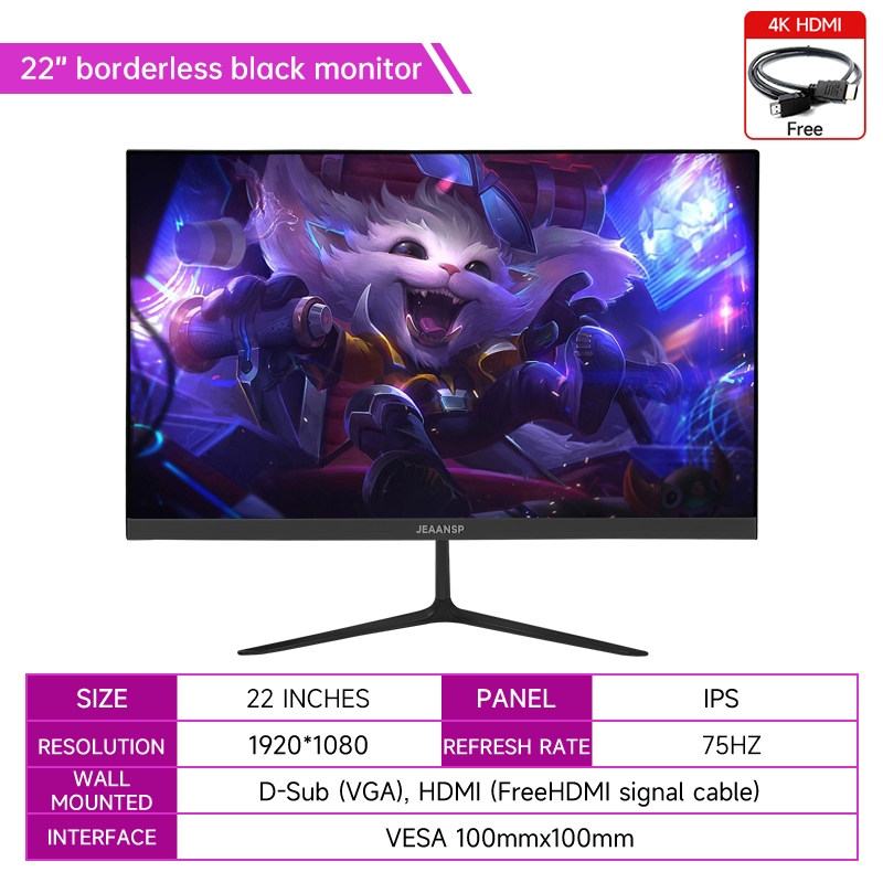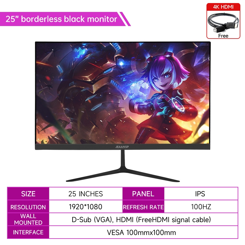JEAANSP Computer Monitor 22 24 25 Inch 75HZ 1080P LED Monitor Frameless Gaming Monitor Murah IPS